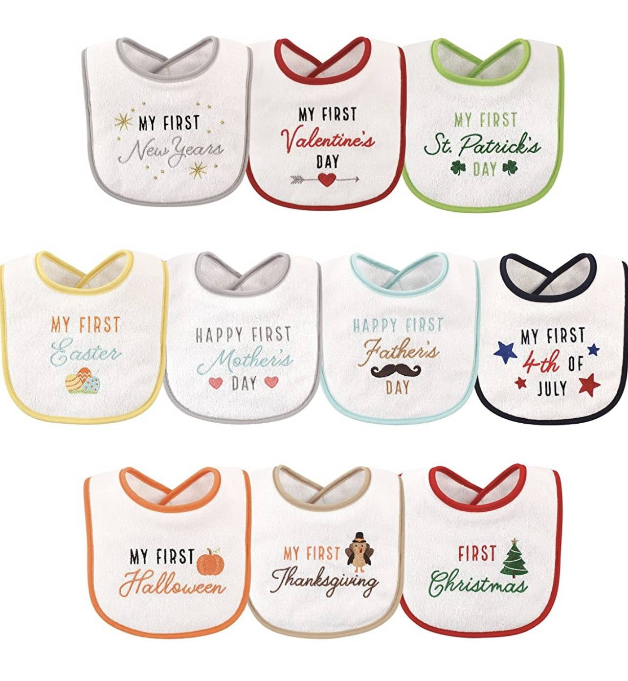 Hudson Baby - Baberos unisex días festivos, paquete de 10, talla única