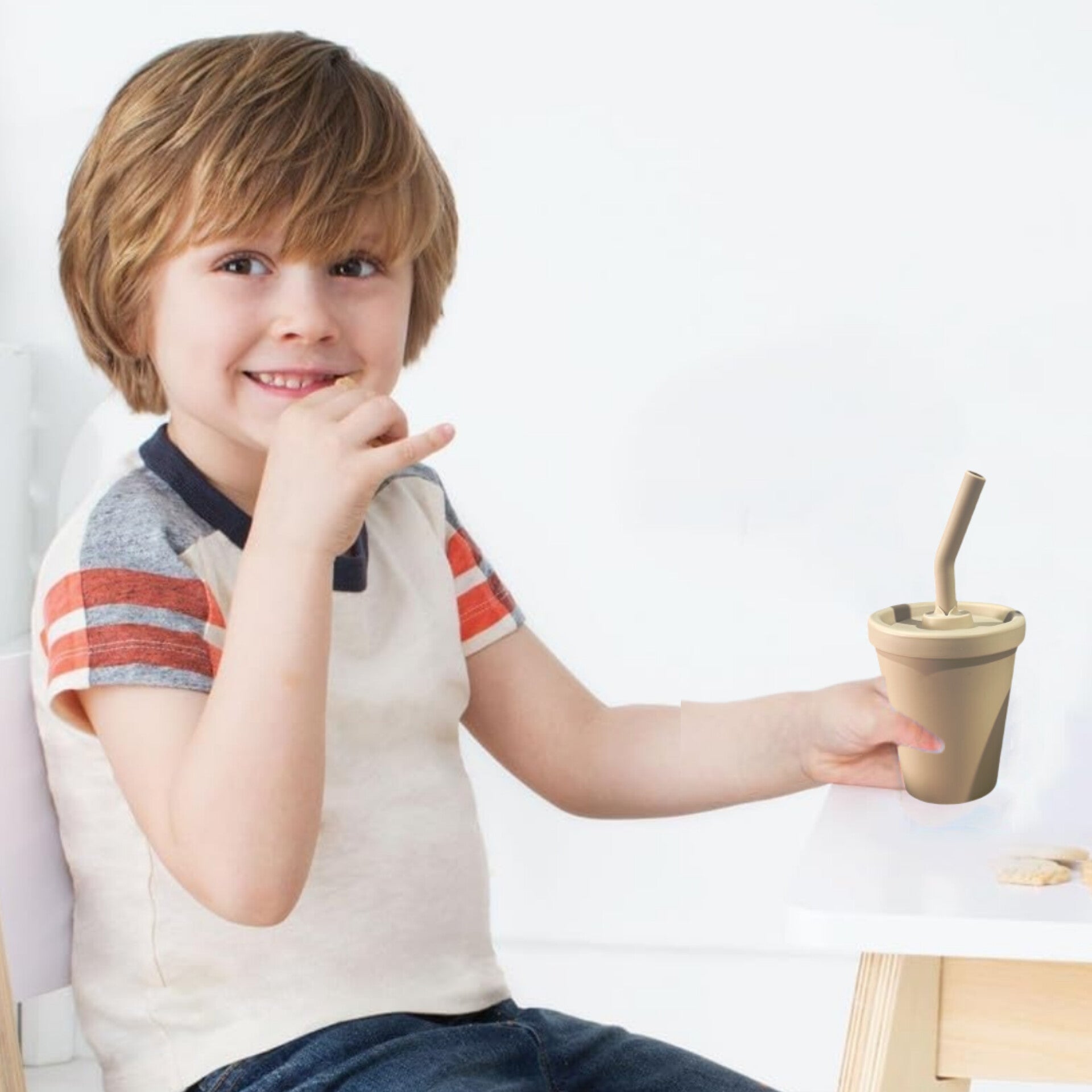 Set de 2 vasos de silicona con pajillas, beige y beige oscuro, 9oz