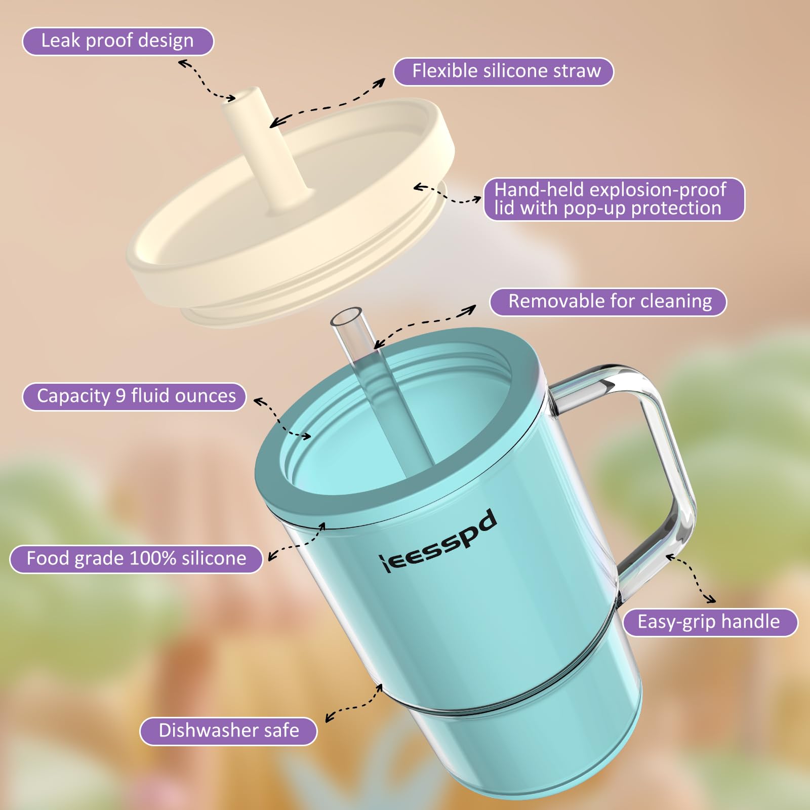 Vasos para niños pequeños – Adorable vaso en miniatura de 9 onzas con popote resistente a fugas