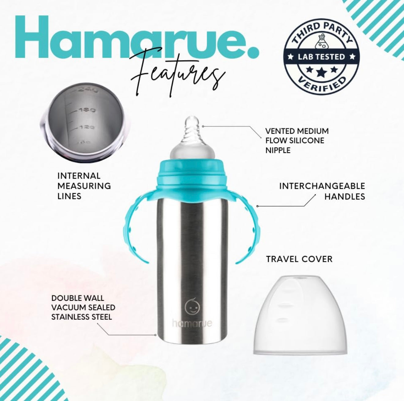 Vaso para sorber de acero inoxidable 3 en 1 para niños pequeños, biberón de acero inoxidable