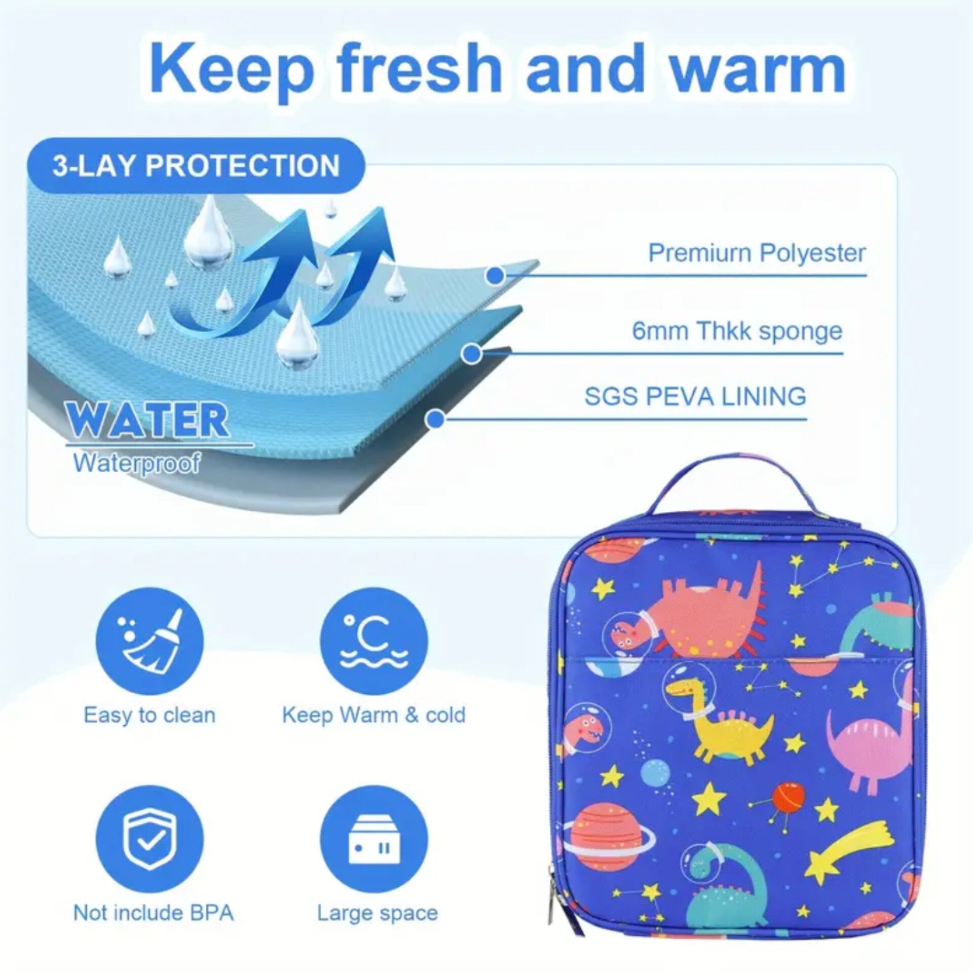 Bolso térmico con recipiente aislado para niños, dinosaurios