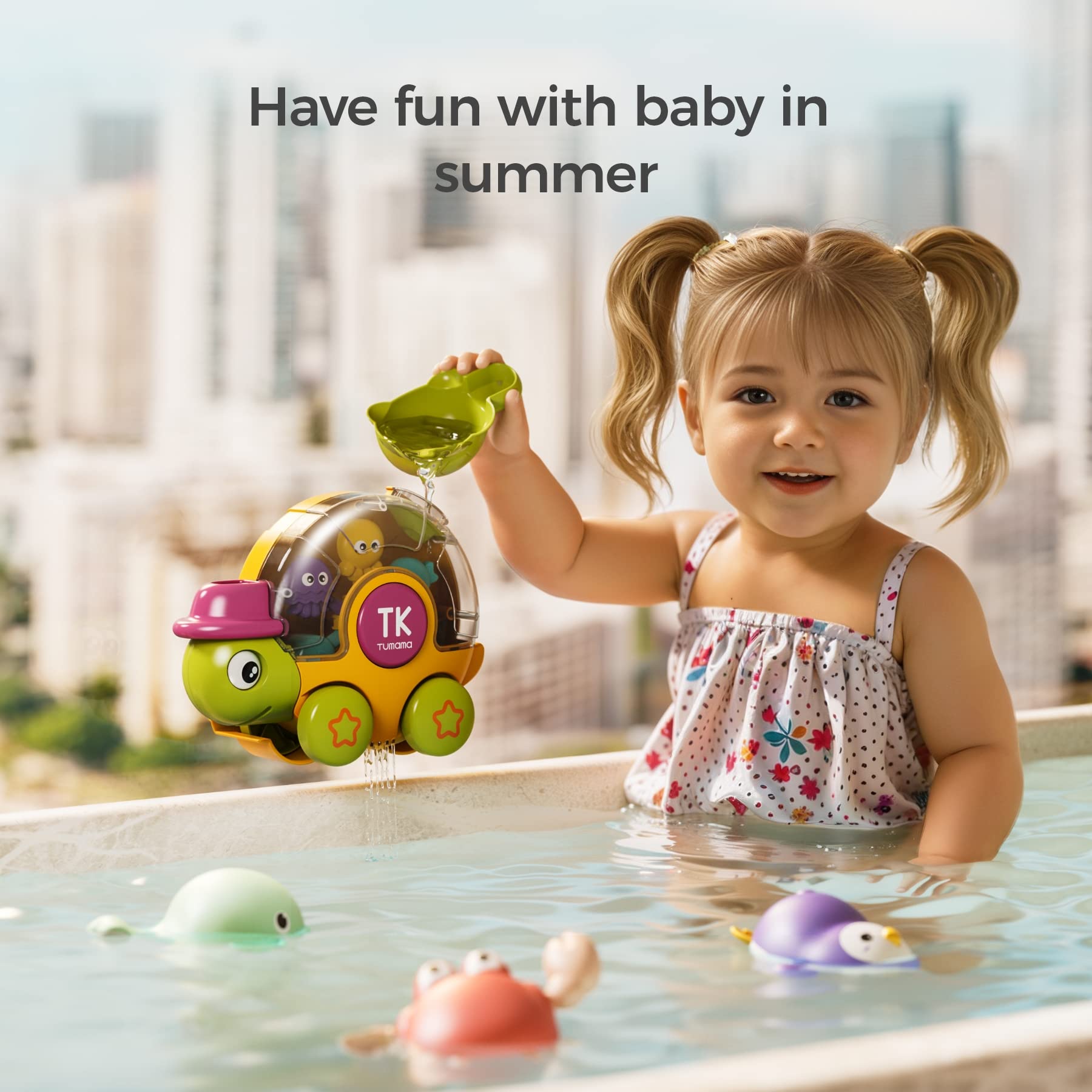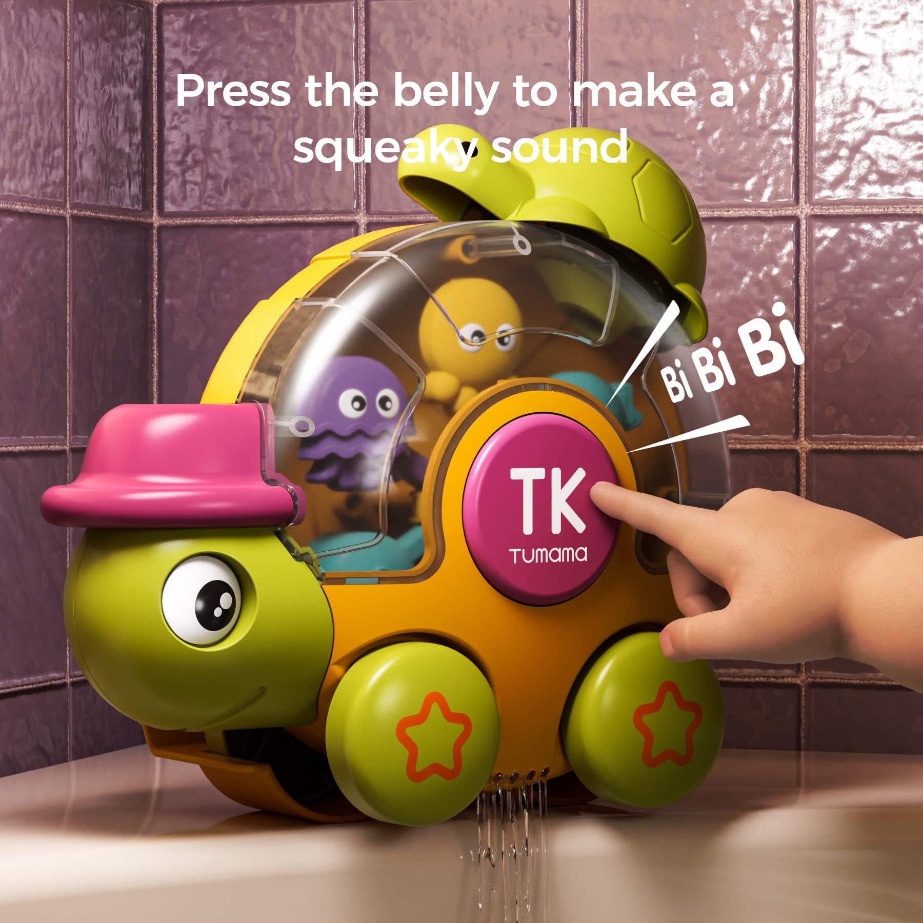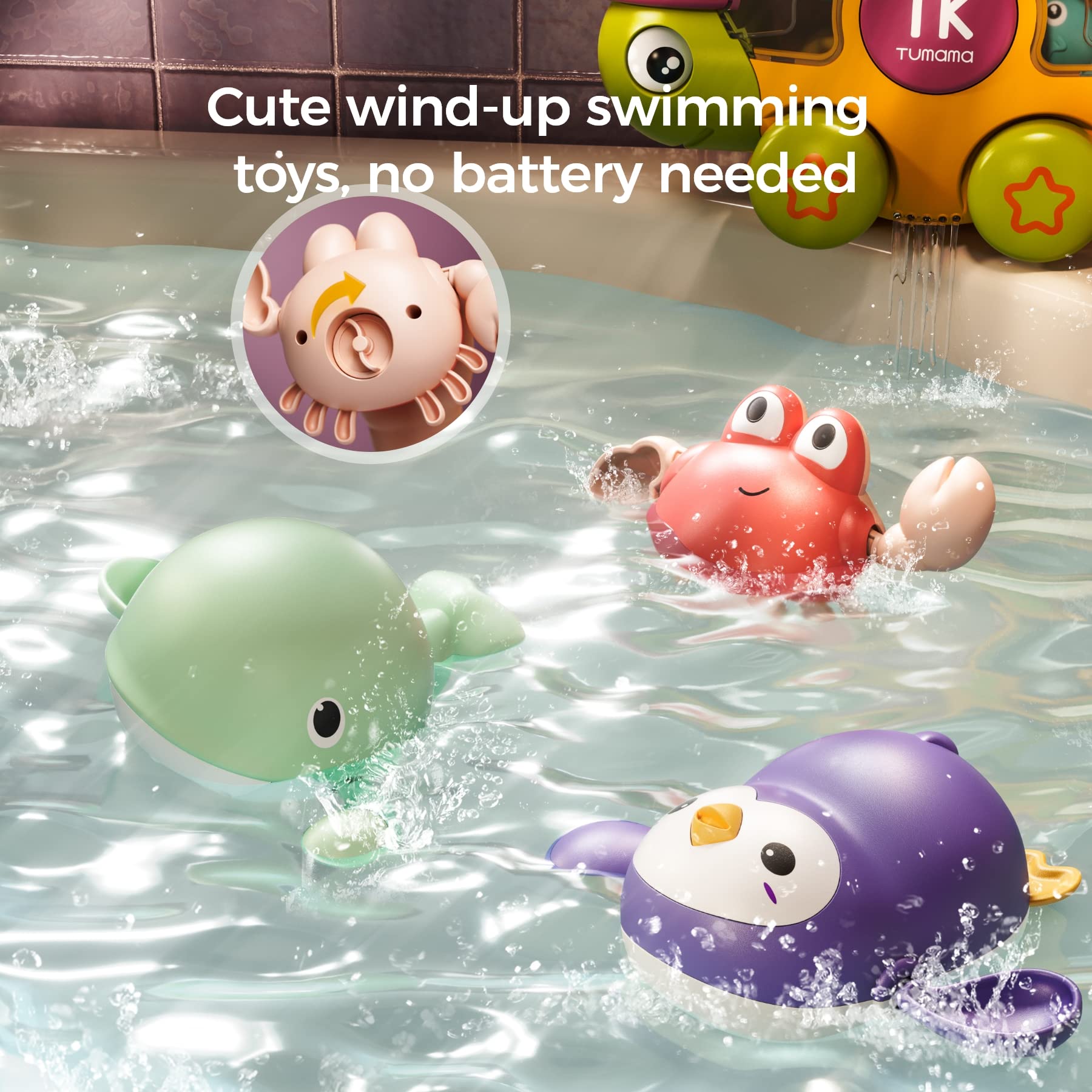 TUMAMA Juguete de baño de tortuga con 3 juguetes de cuerda, rueda de agua giratoria/ojos