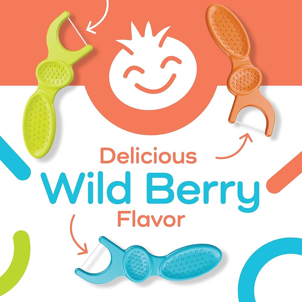 Plackers Palillos de hilo dental Dual Gripz para niños con mango de doble agarre, sabor a bayas silvestres, 90 unidades