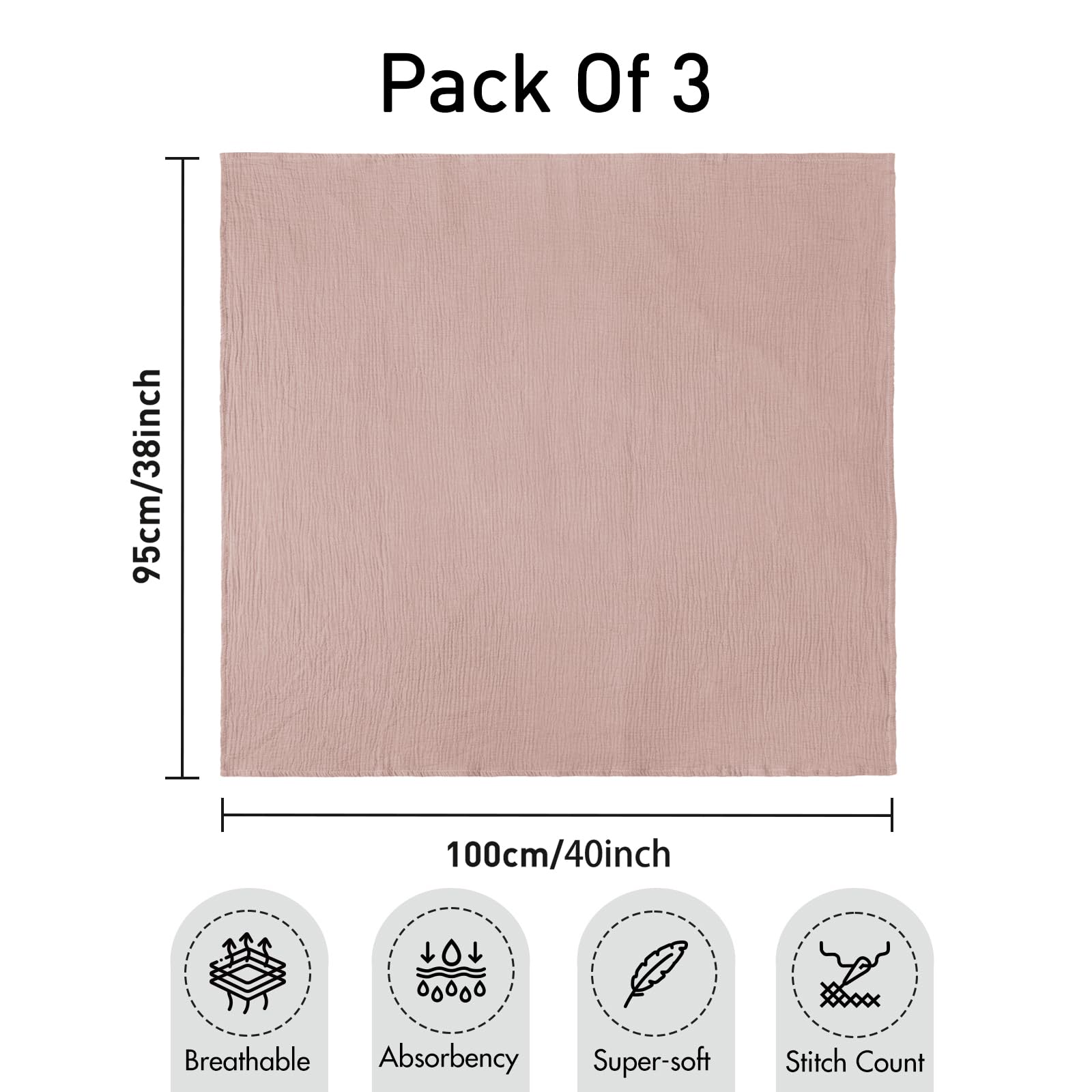 Mantas de muselina para recién nacido, paquete de 3 mantas transpirables y suaves, grandes de 38 x 40 pulgadas