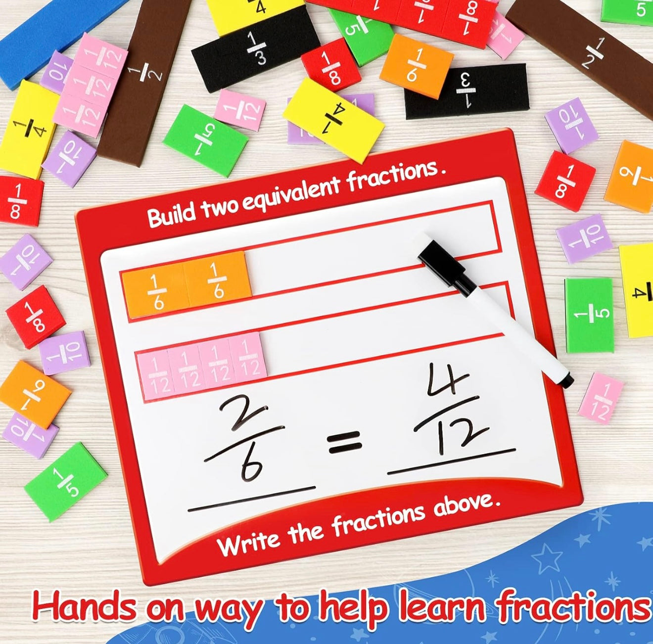 Conjunto de actividades de círculos de fracciones y fichas magnéticas de fracciones de Torlam