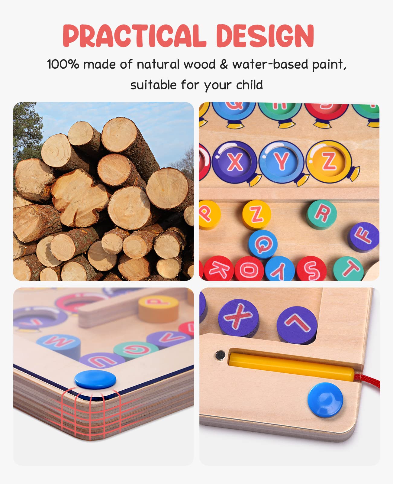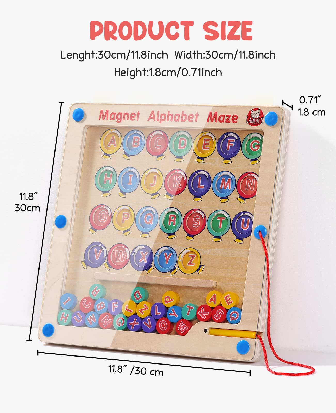 GAMENOTE Tablero magnético del laberinto del alfabeto con 4 tarjetas de actividad
