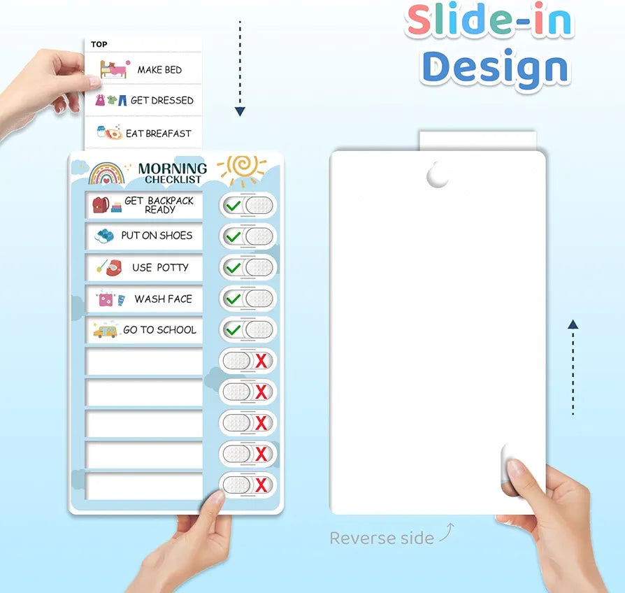 Esta tabla de rutina 3 en 1 para acostarse, mañana, día a día, no es una tabla de papel ordinaria. Es una lista de verificación interactiva que a los niños les encantará actualizarse con mover el botón suavemente para cada tarea completada. El botón √ les permite mostrar con orgullo su progreso.