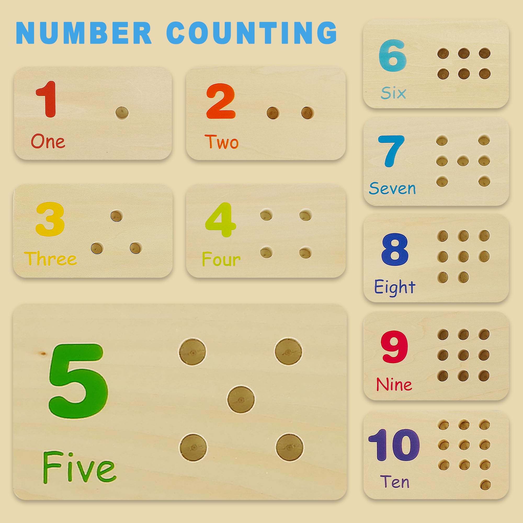 Tablero de clavijas de madera para contar números, contadores de matemáticas Montessori para niños