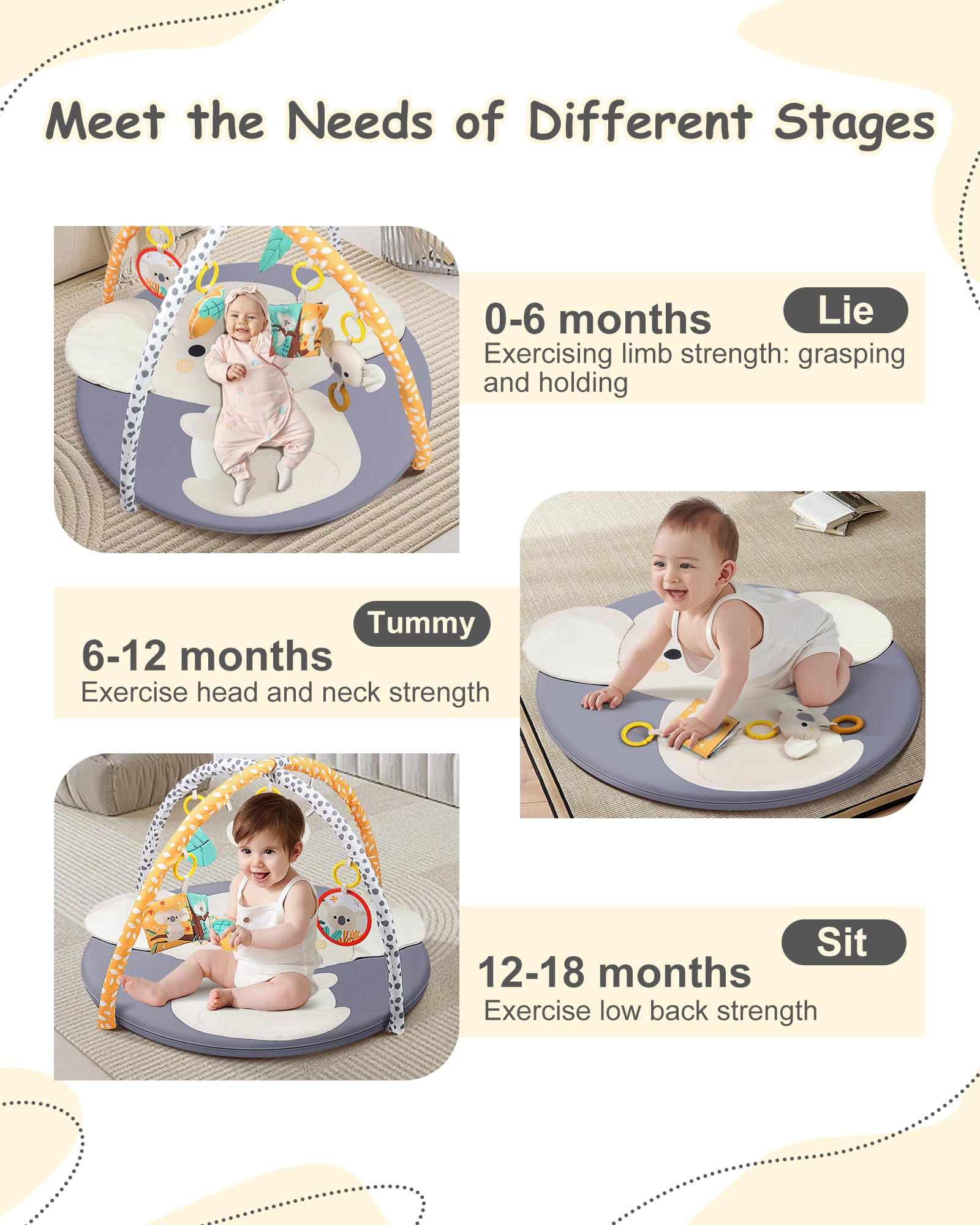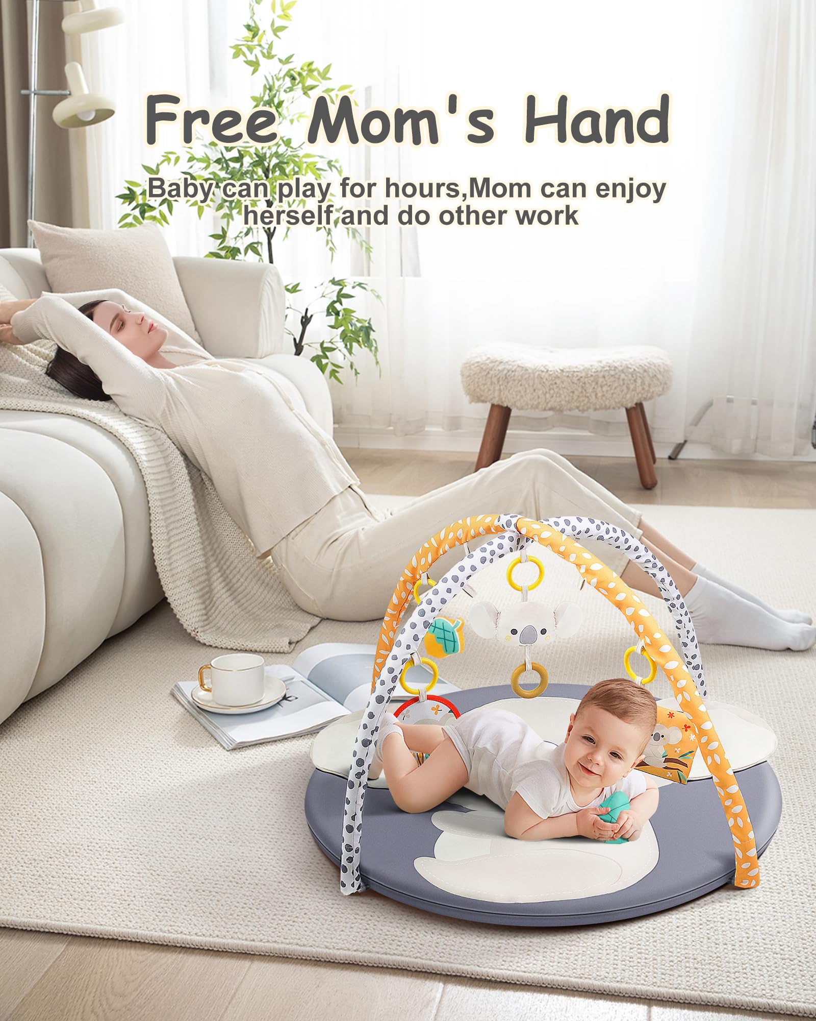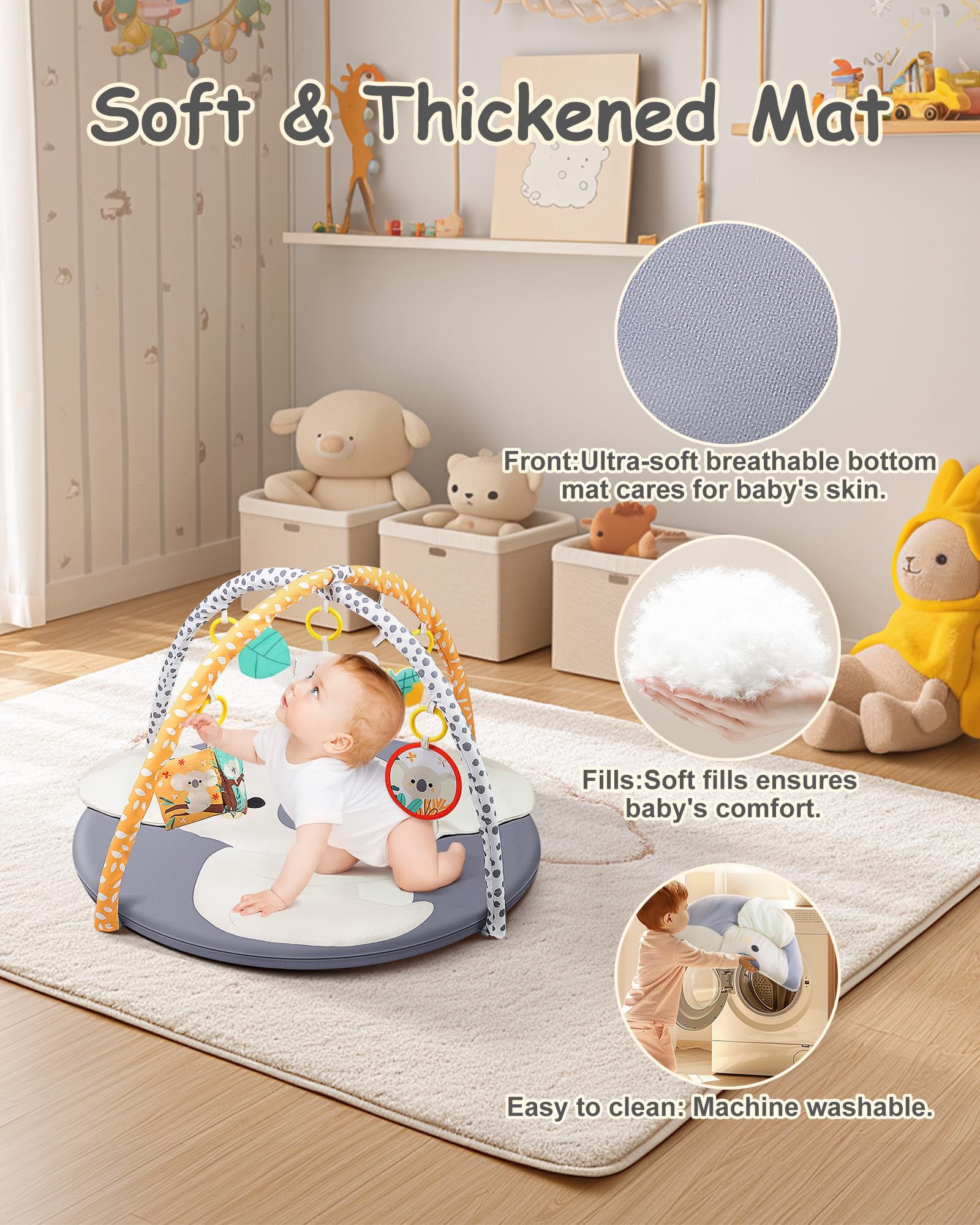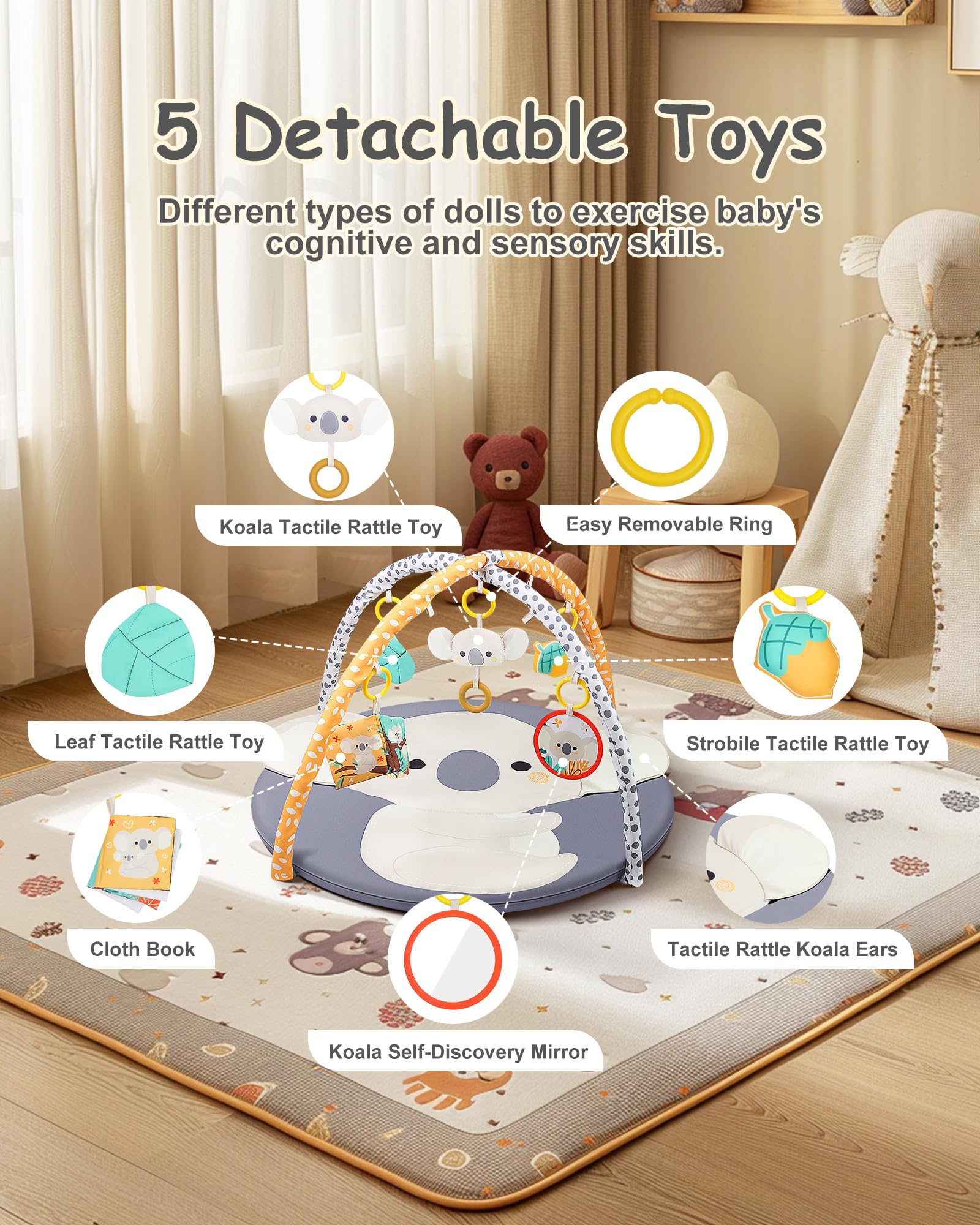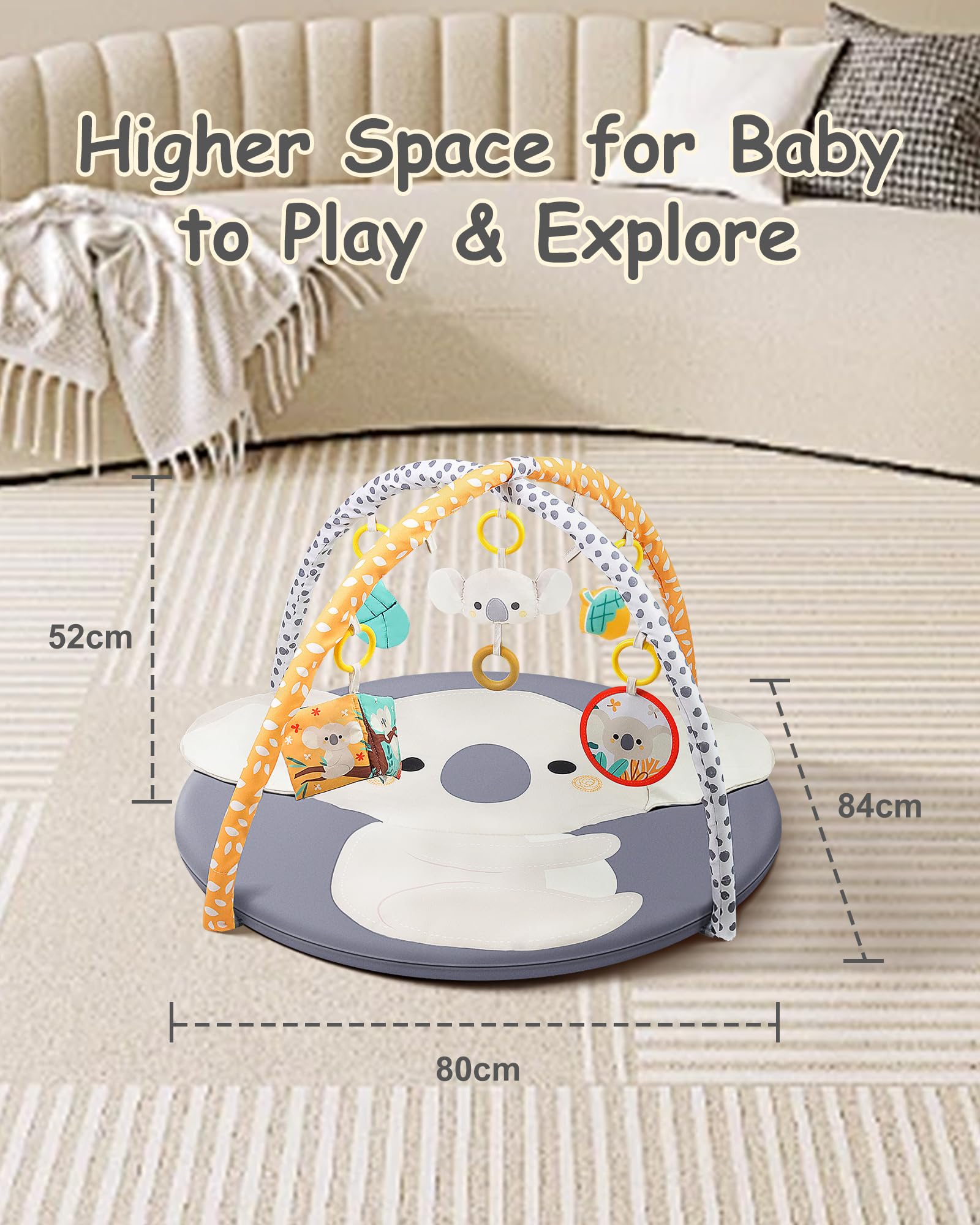 Gimnasio de juegos para bebés y tapete para jugar boca abajo, lindo koala