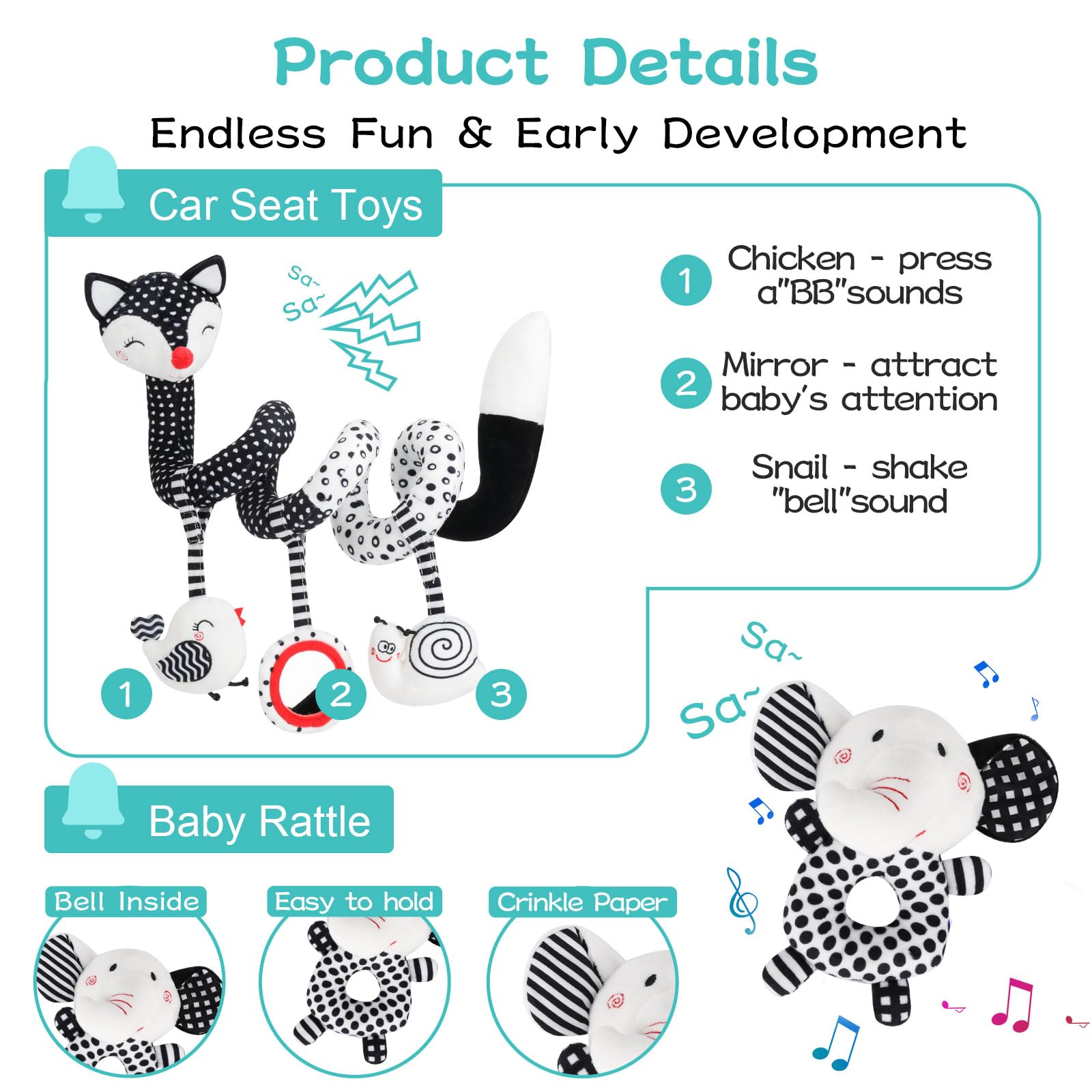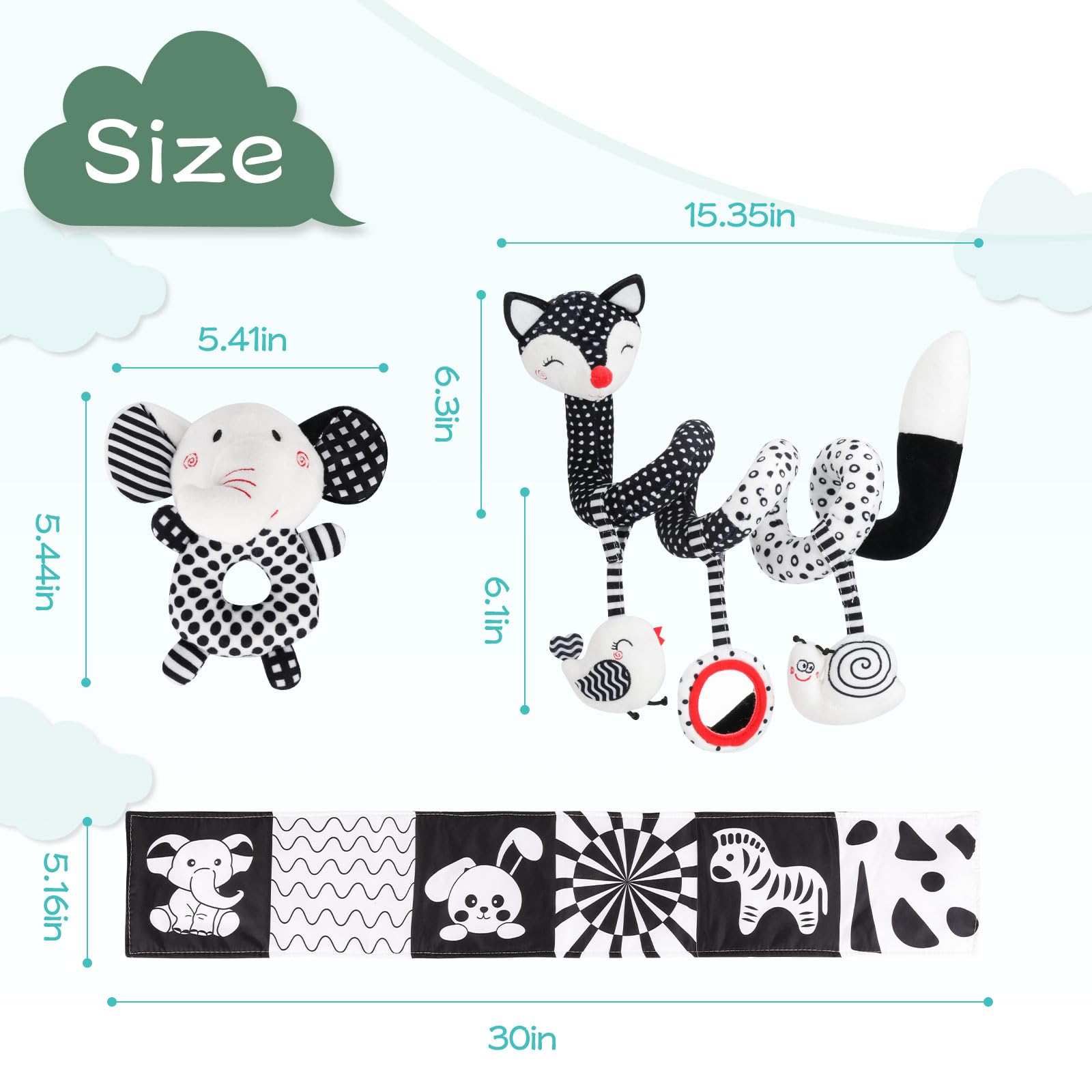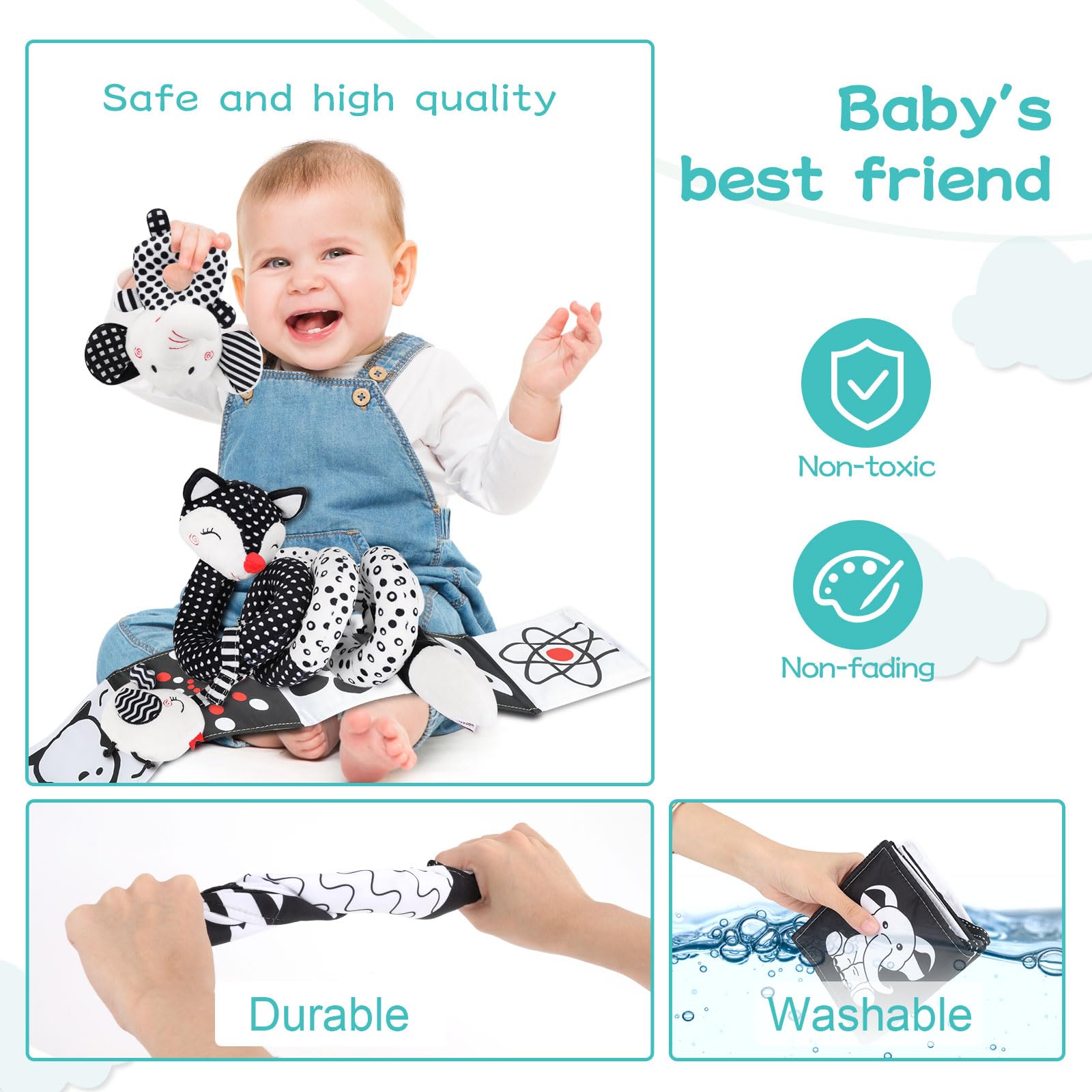 Juguetes para bebés en blanco y negro de alto contraste