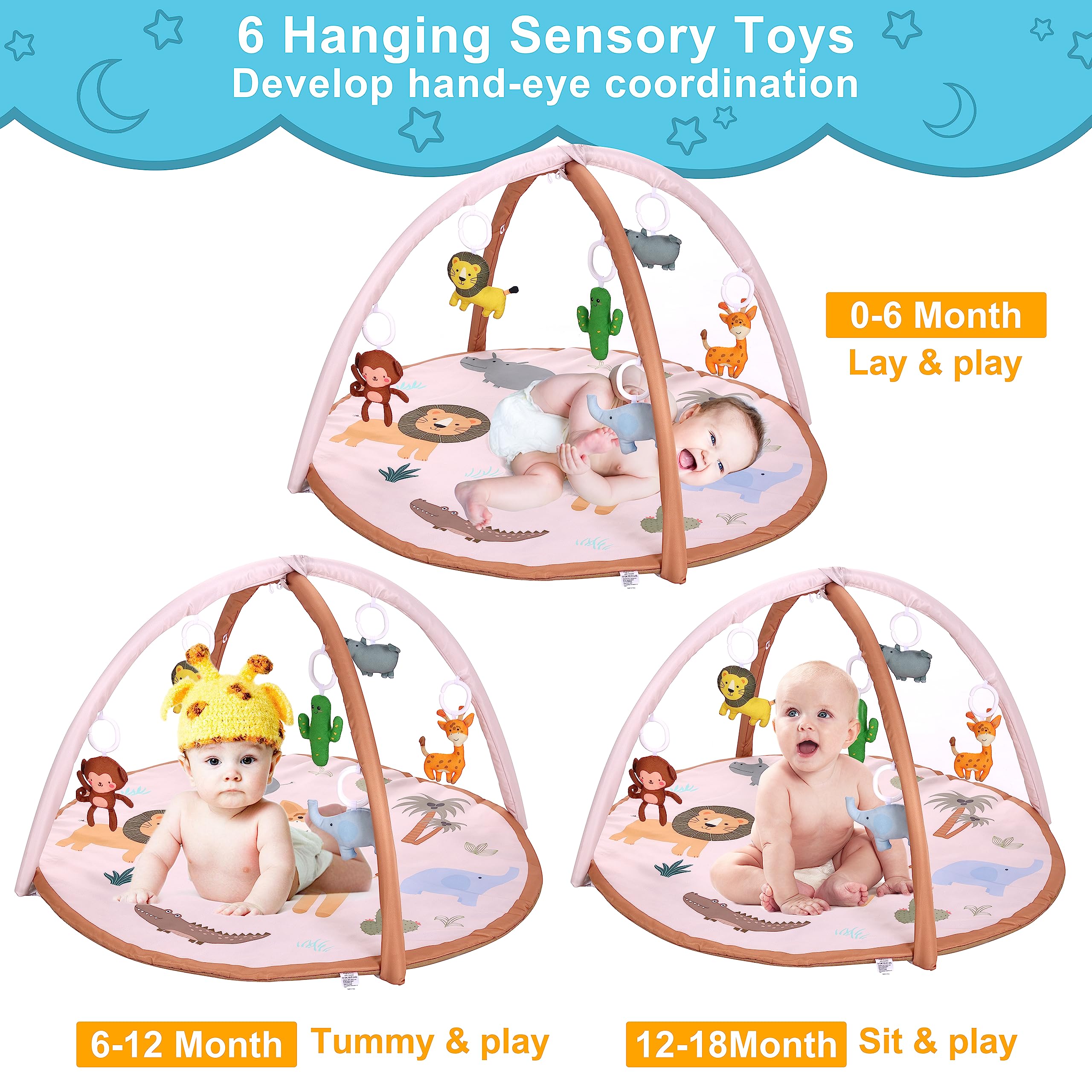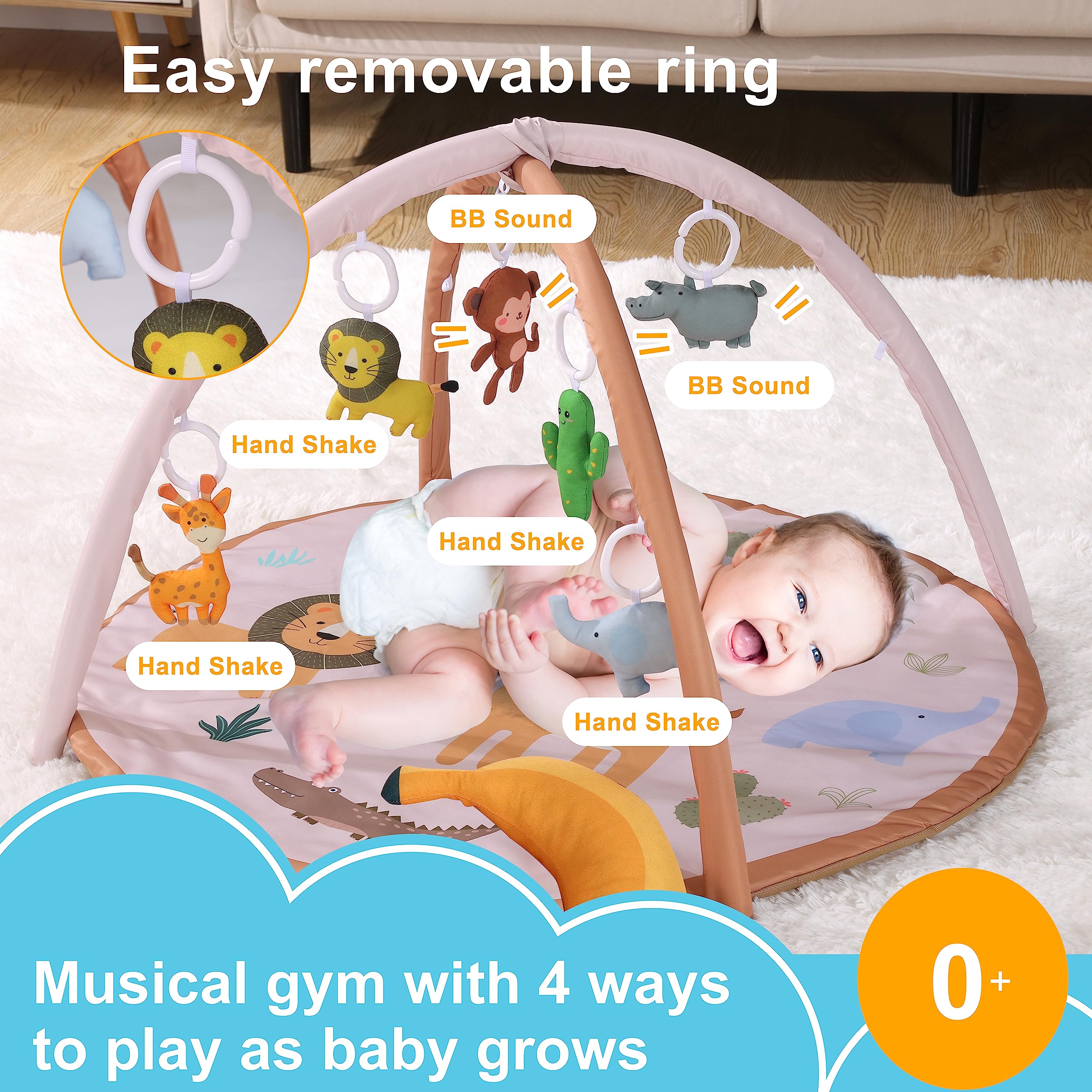 Tapete para el tiempo boca abajo con 6 juguetes desmontables y almohada de plátano