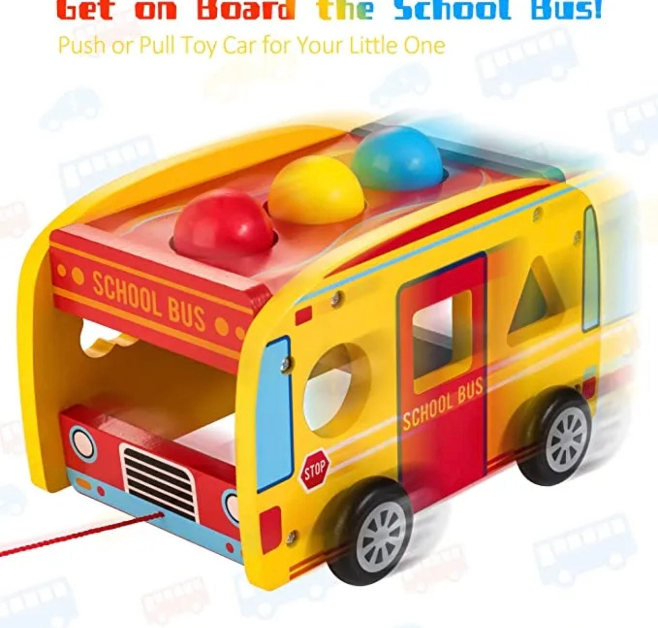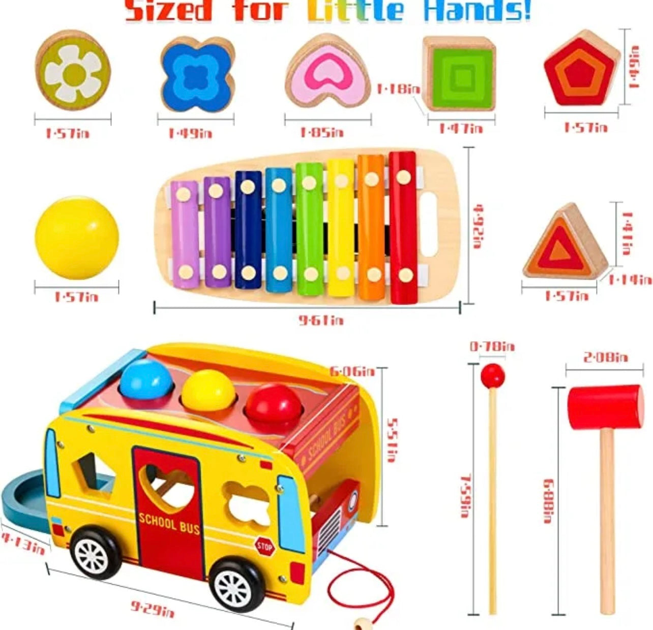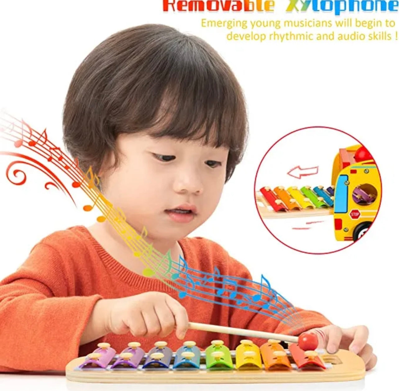 Bravmate juego de autobús escolar de madera con xilófono deslizable