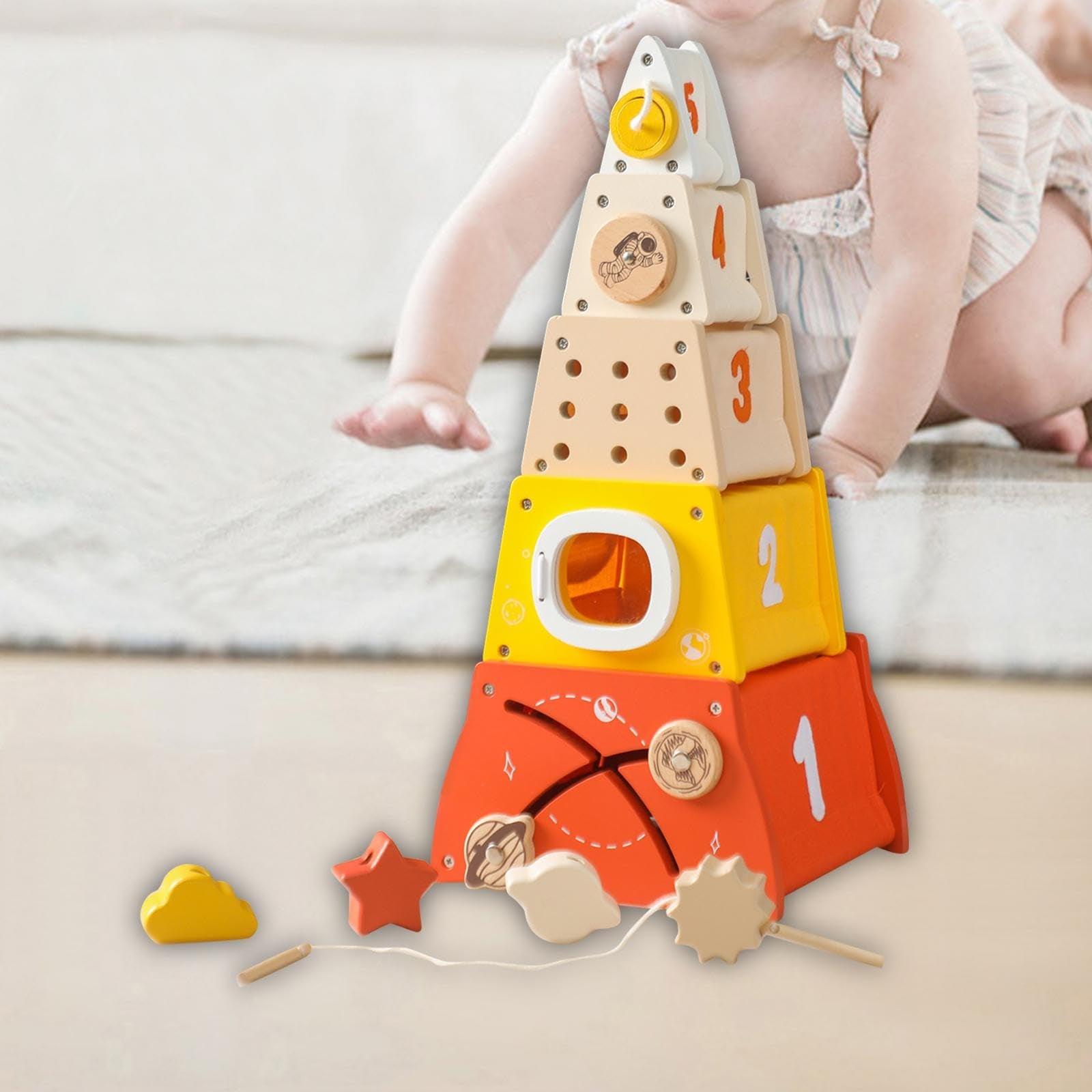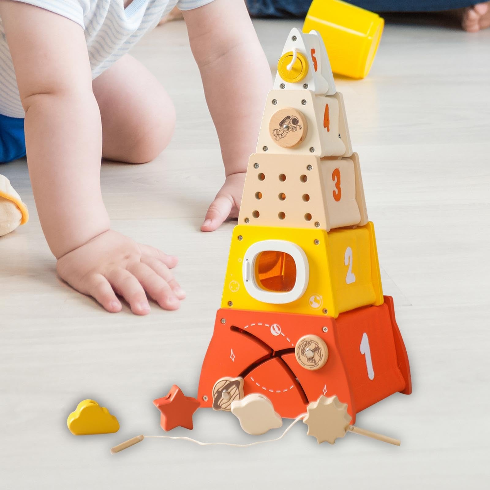 Cajas anidadas de números para niños, Cubos ocupados apilables de Madera