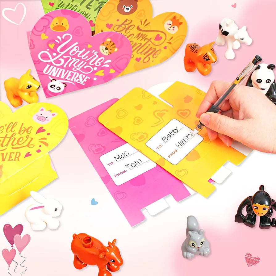 Ampliamente utilizado: el regalo de San Valentín en el aula es adecuado para diversas actividades del día de San Valentín en el aula. Con 4 estilos diferentes de tarjetas de San Valentín y 16 estilos diferentes de animales, satisface varias preferencias. El producto promueve la creatividad, el aprendizaje y el compromiso para niños de todas las edades, por lo que es una opción divertida y atractiva para las celebraciones del Día de San Valentín en un entorno escolar.