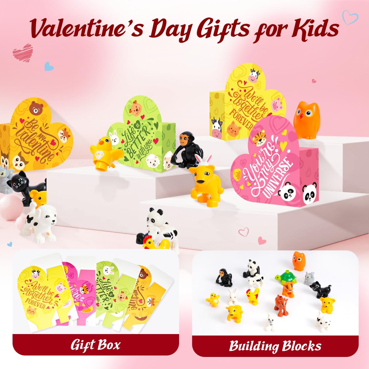 El paquete incluye: este juego de regalo del día de San Valentín incluye 16 minifiguras de animales diferentes y 16 cajas de tarjetas de regalo de San Valentín en 4 estilos diferentes. Los niños pueden personalizar estas tarjetas con sus propios mensajes y colocarlas junto con los bloques de construcción. Este enfoque práctico permite a los niños preparar sus propios regalos de San Valentín para amigos, dejando una impresión duradera.
