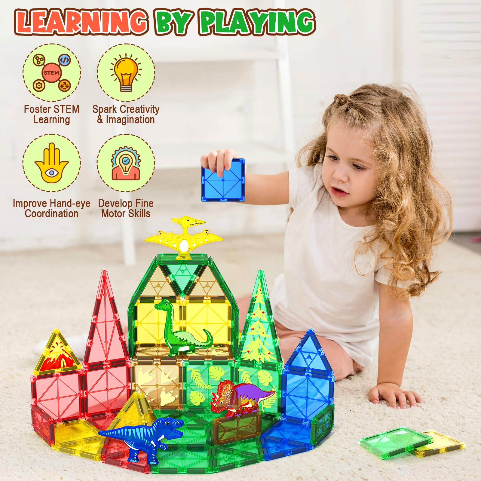 Juguetes de dinosaurio, azulejos magnéticos, 40 piezas