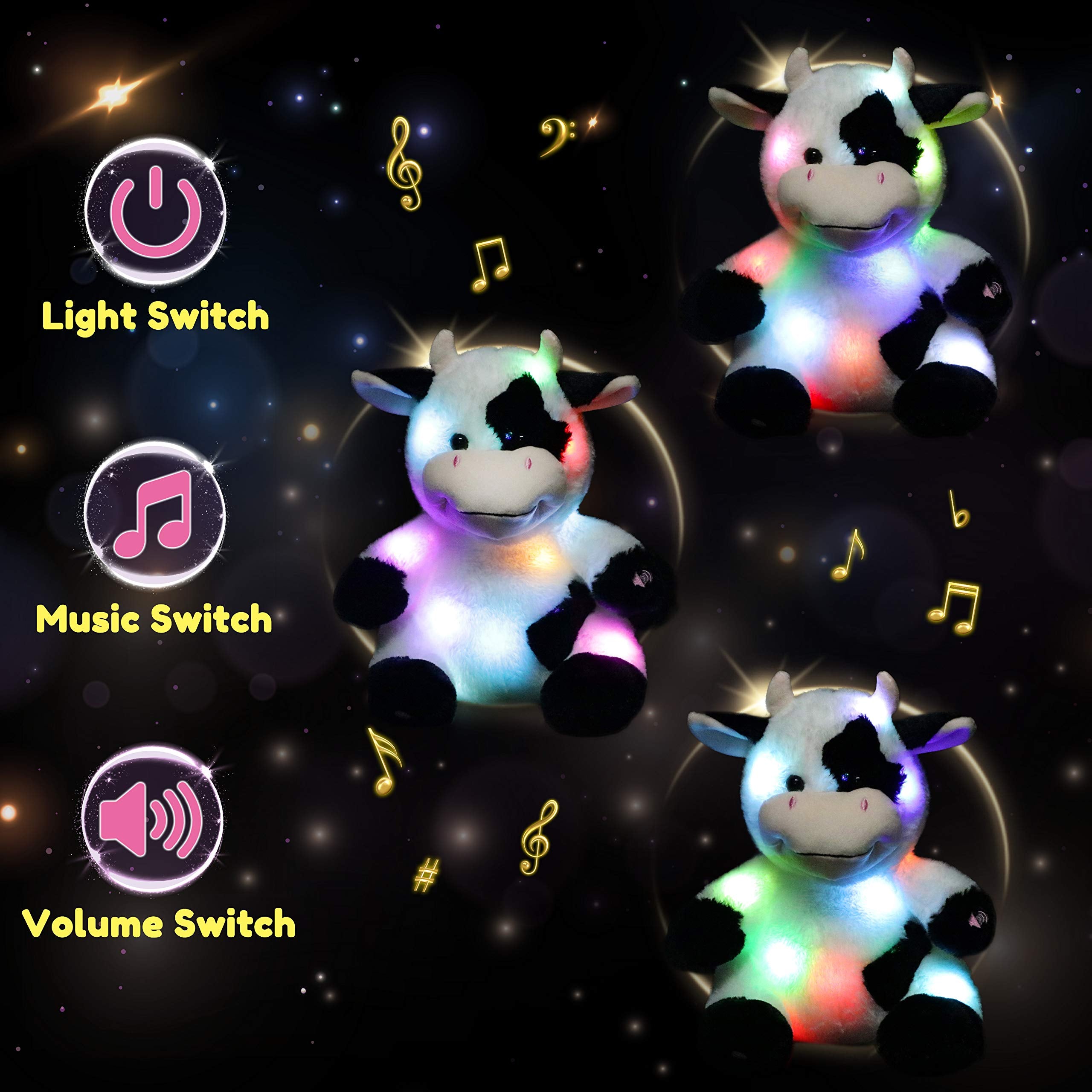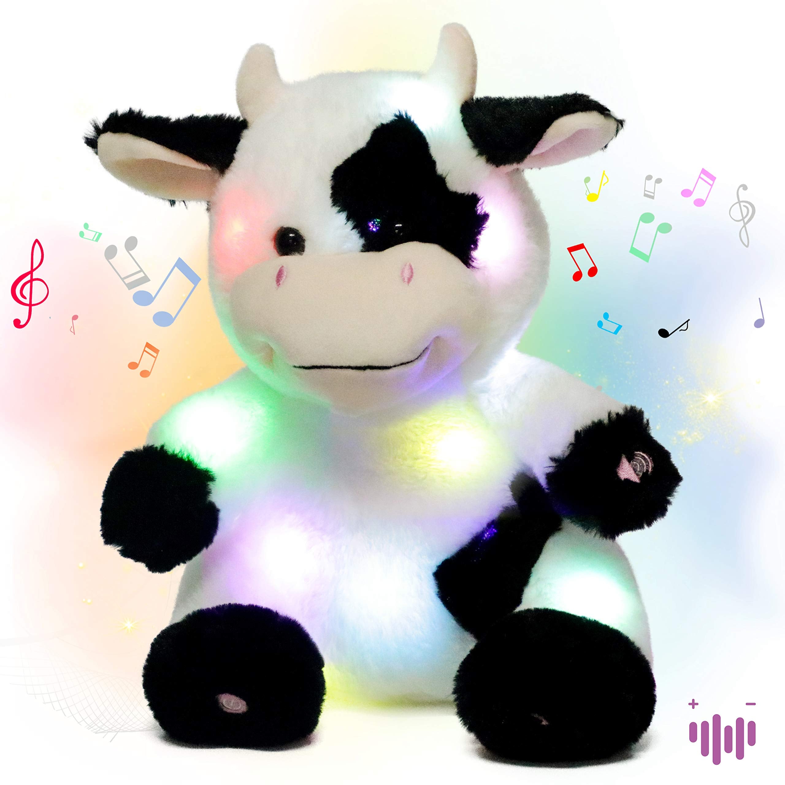 Hopearl Vaca de peluche con luces LED musicales y cantantes