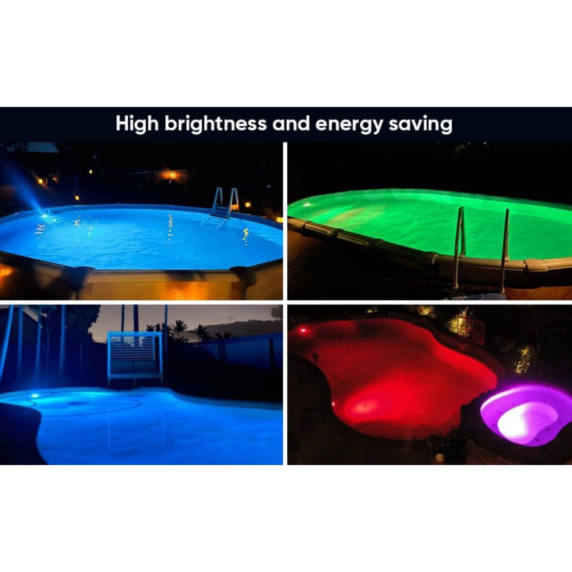 Función de temporizador y ahorro de energía: nuestras luces LED RGB para piscina permiten programar el tiempo de trabajo. Una vez configurada, la luz se encenderá y apagará automáticamente todos los días a una hora fija, incluso si el teléfono está fuera de alcance. Utiliza LED súper brillantes que emiten un amplio haz de luz para iluminar áreas vitales de toda tu piscina con un brillo increíble.