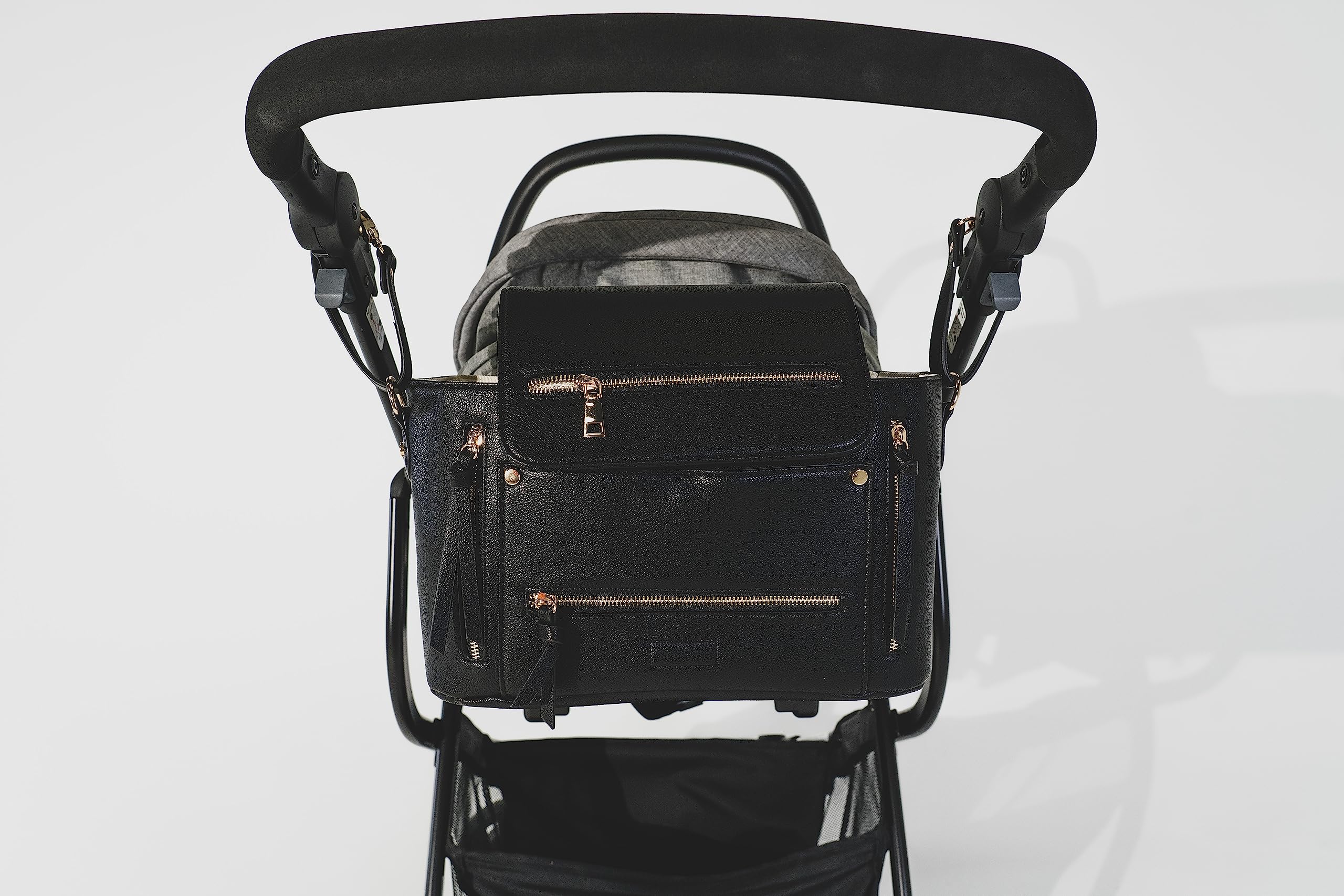 Organizador de cuero vegano prémium para cochecito, mini bolsa de pañales