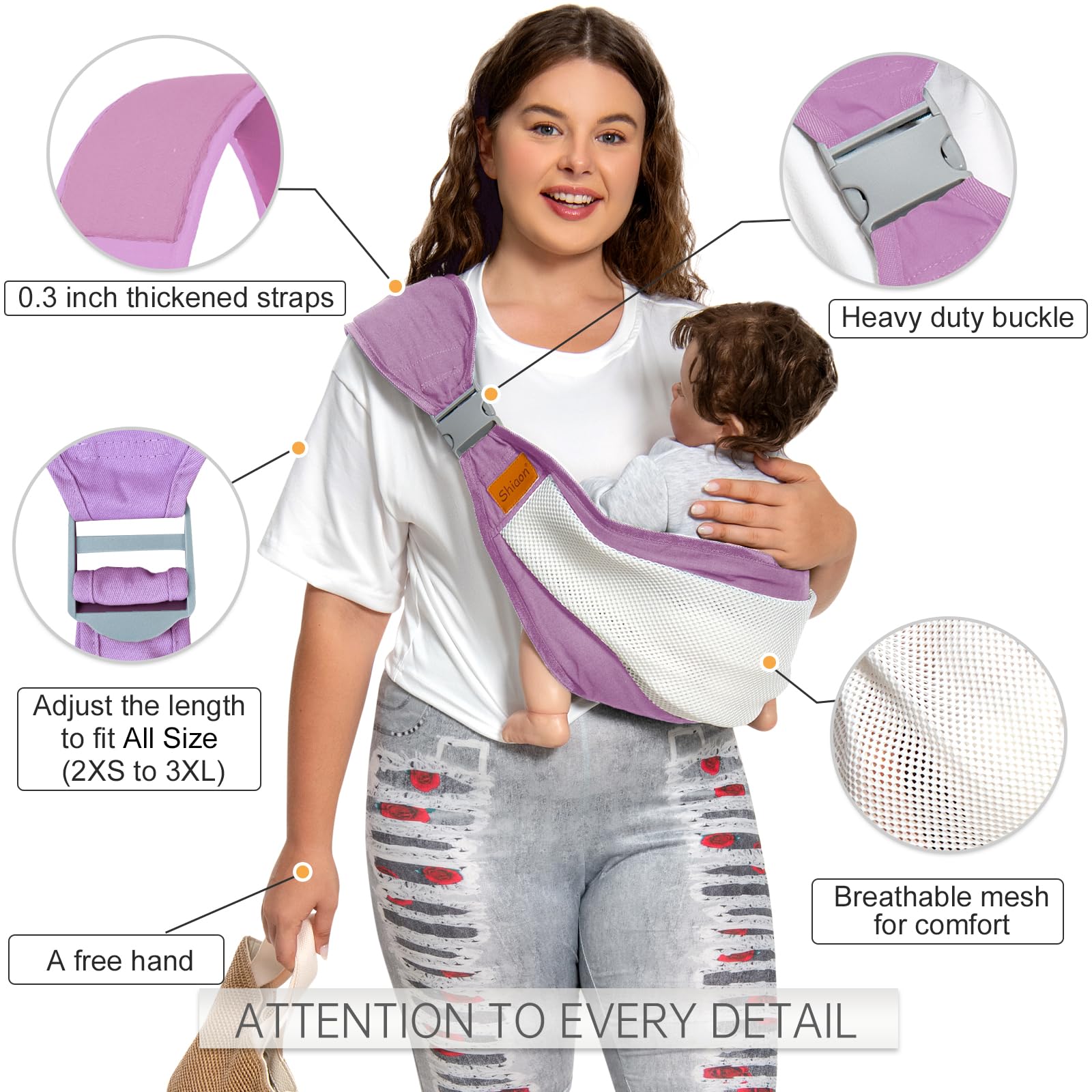 Shiaon- Portabebé desde recién nacidos hasta niños pequeños (3-20 kg), morado