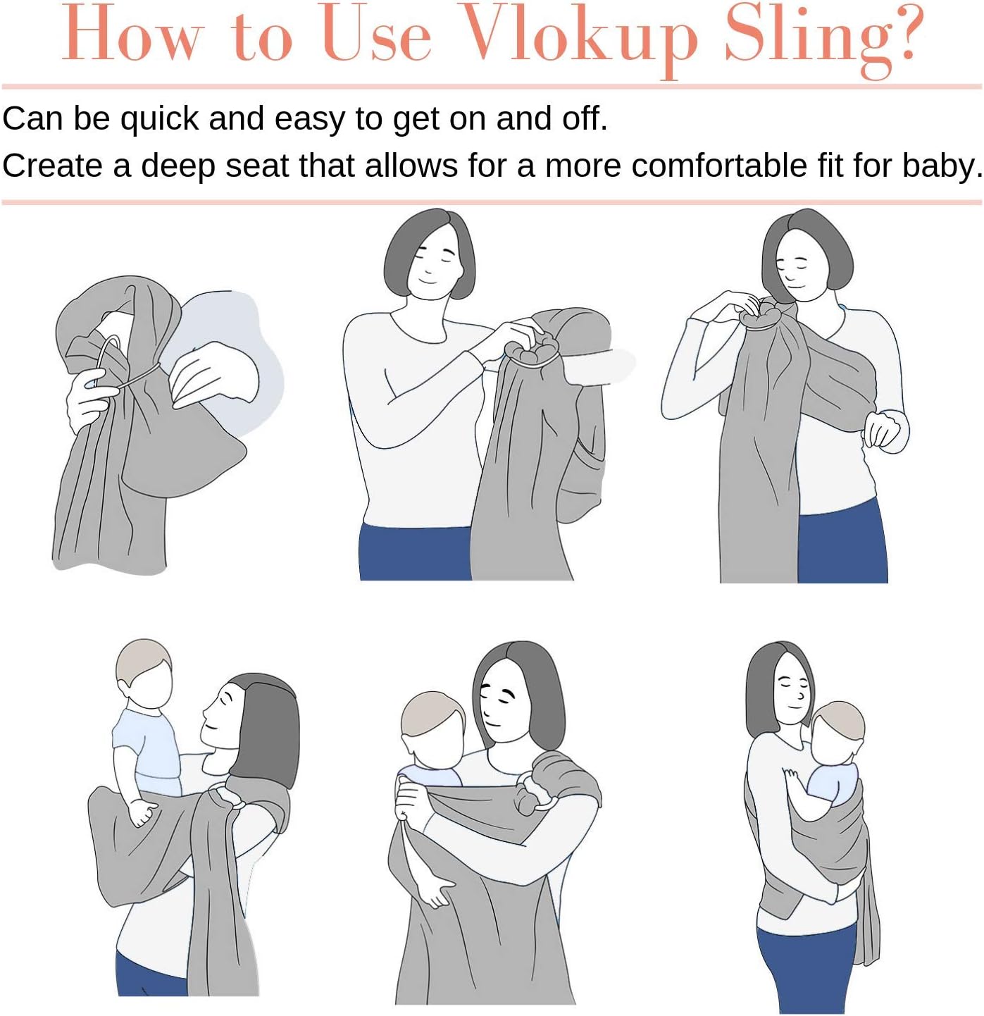 Vlokup-Portabebés de lino extra suave para recién nacidos, bebés, niños pequeños y niños, gris claro