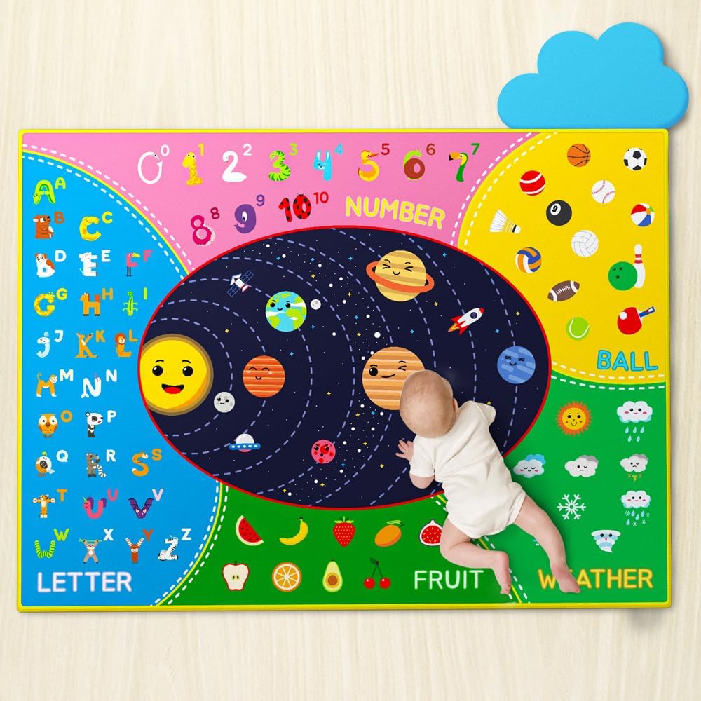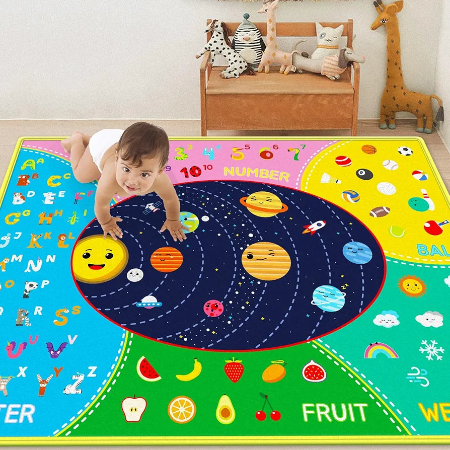 Tapetes de juego con varios temas: nuestras alfombrillas de juego para bebé son coloridas y ricas en temas para atraer la atención de tu bebé. Animales, insectos, frutas, clima, planetas, bolas, números y otros temas están disponibles para sus hijos. Aprendiendo la cognición, hay tantos temas que seguramente atraerán a su bebé.