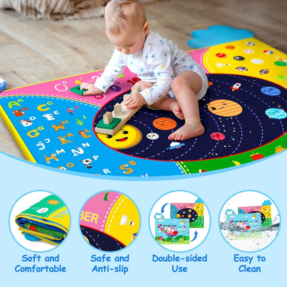 Tapete de juego súper suave para bebés: 59.4 x 40 pulgadas, la alfombra suave y cómoda para bebé puede satisfacer completamente las necesidades de gateo y diversas actividades del bebé. La alfombrilla para gatear para bebés es muy suave. Tu bebé se sentirá muy cómodo gateando y jugando en la alfombra de juego. Los patrones atraerán a los bebés a aprender y explorar y promover su desarrollo cerebral.