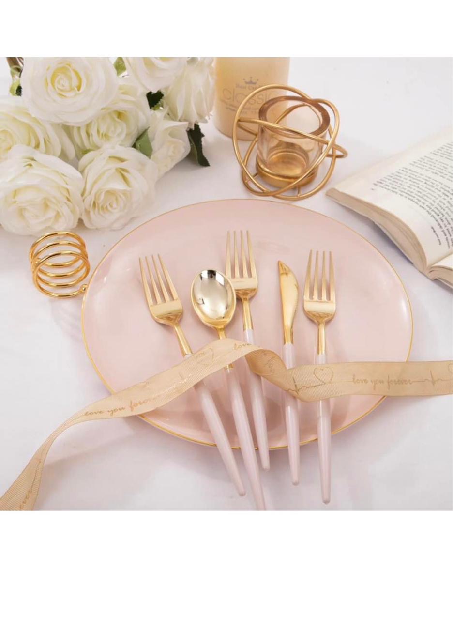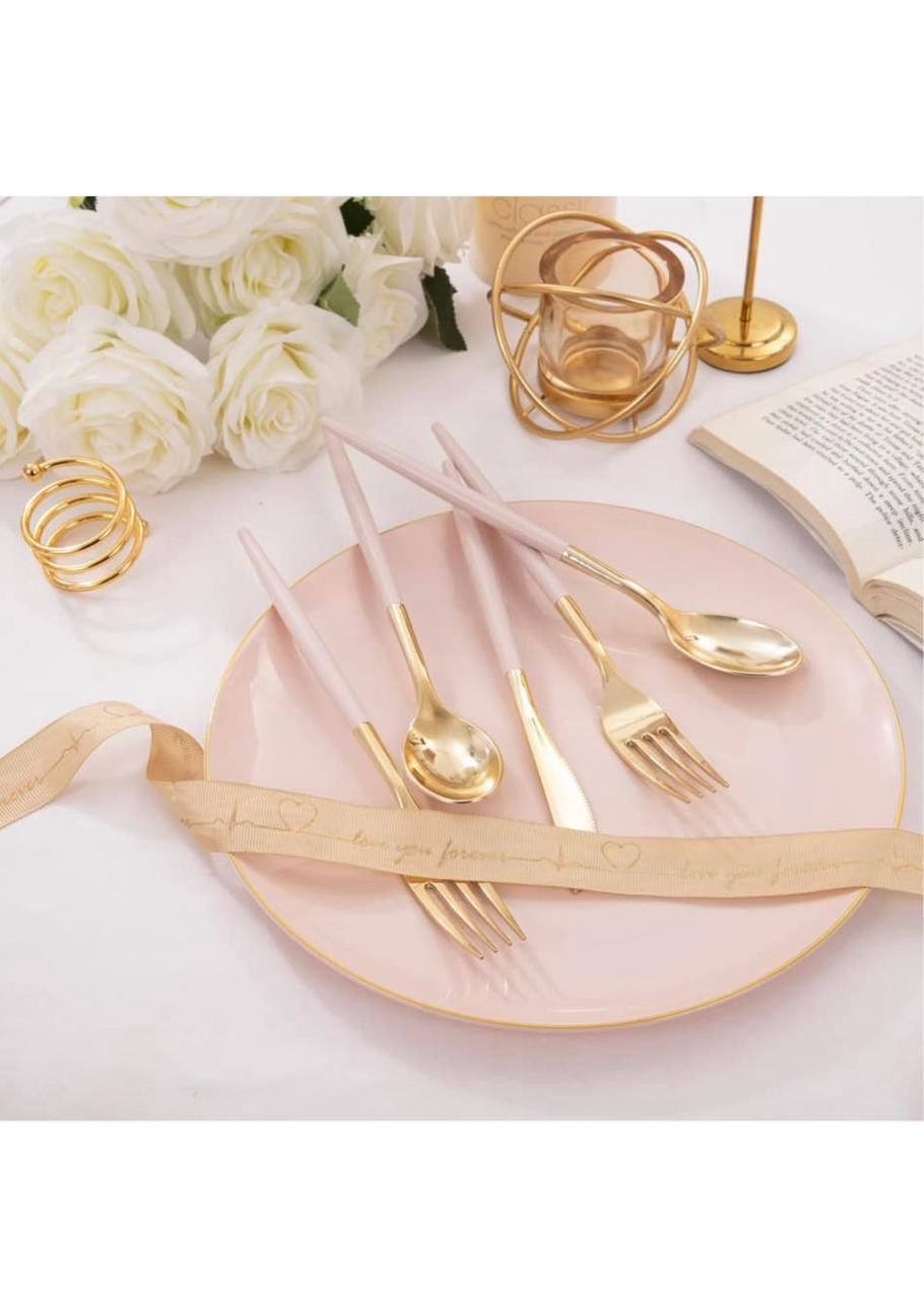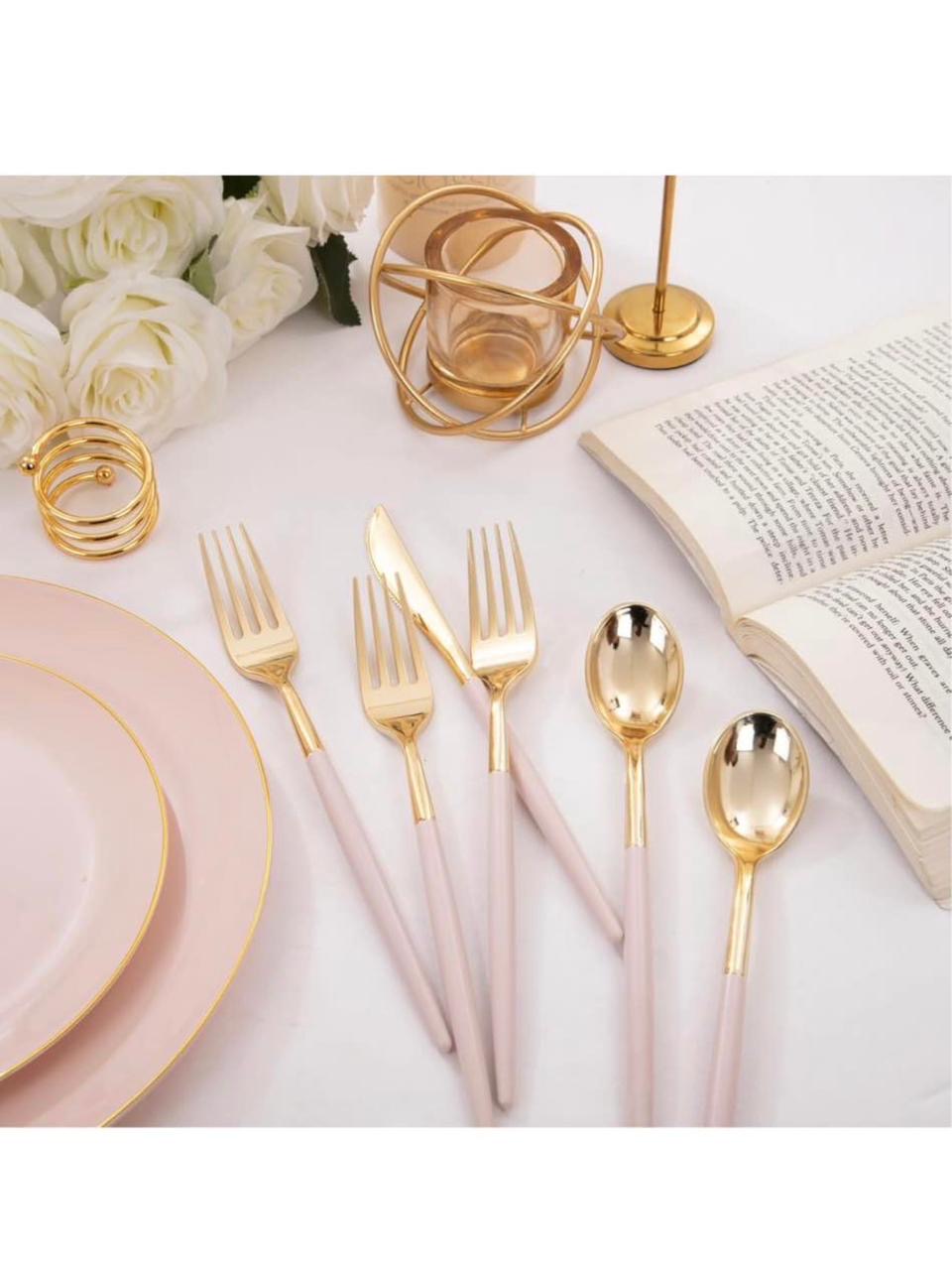Cubiertos dorado con rosado pastel, 100 unidades de cada uno