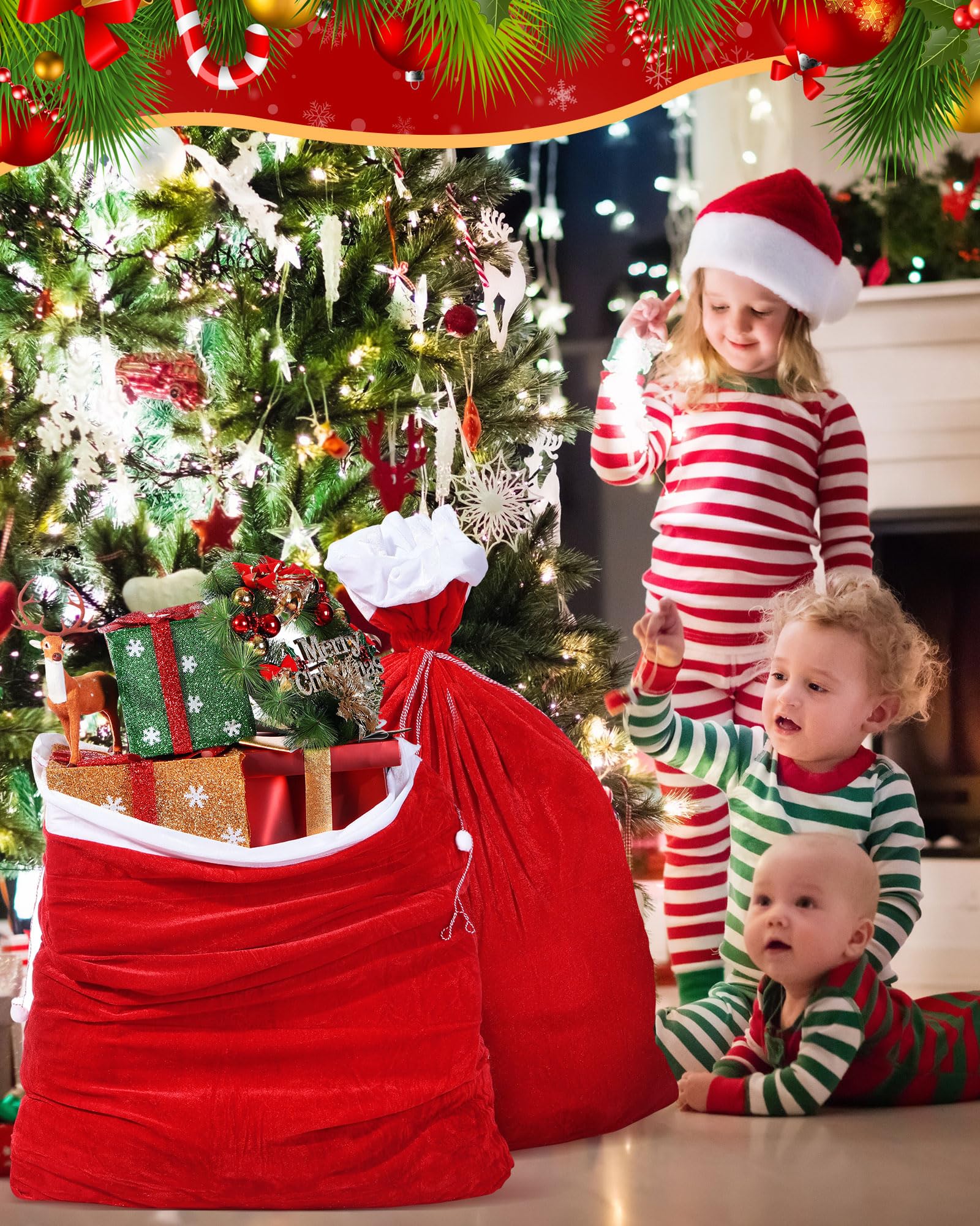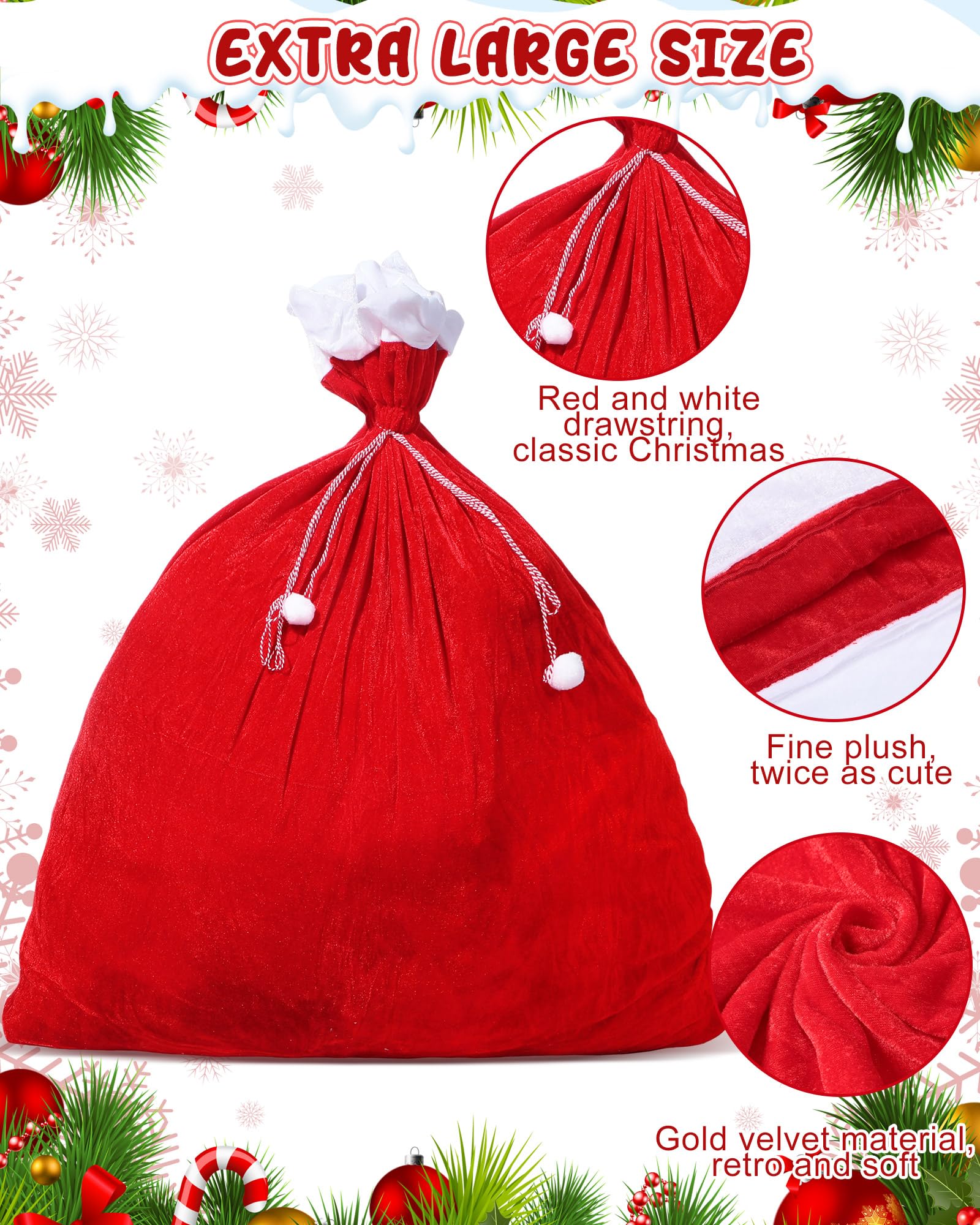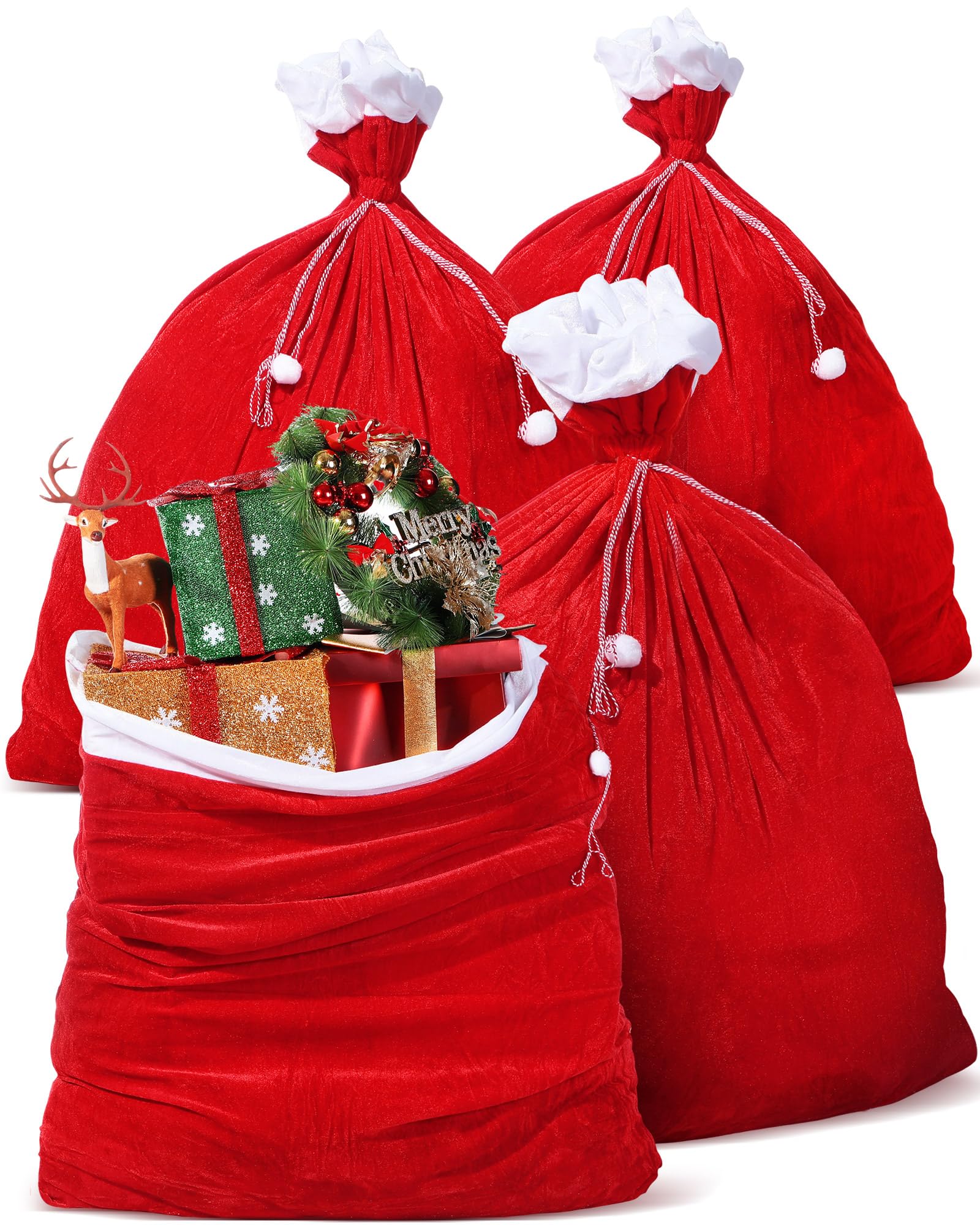4 bolsas de terciopelo rojo de Navidad de Papá Noel con cordón de ajuste, tamaño extragrande, (43.3 x 51.2 pulgadas)