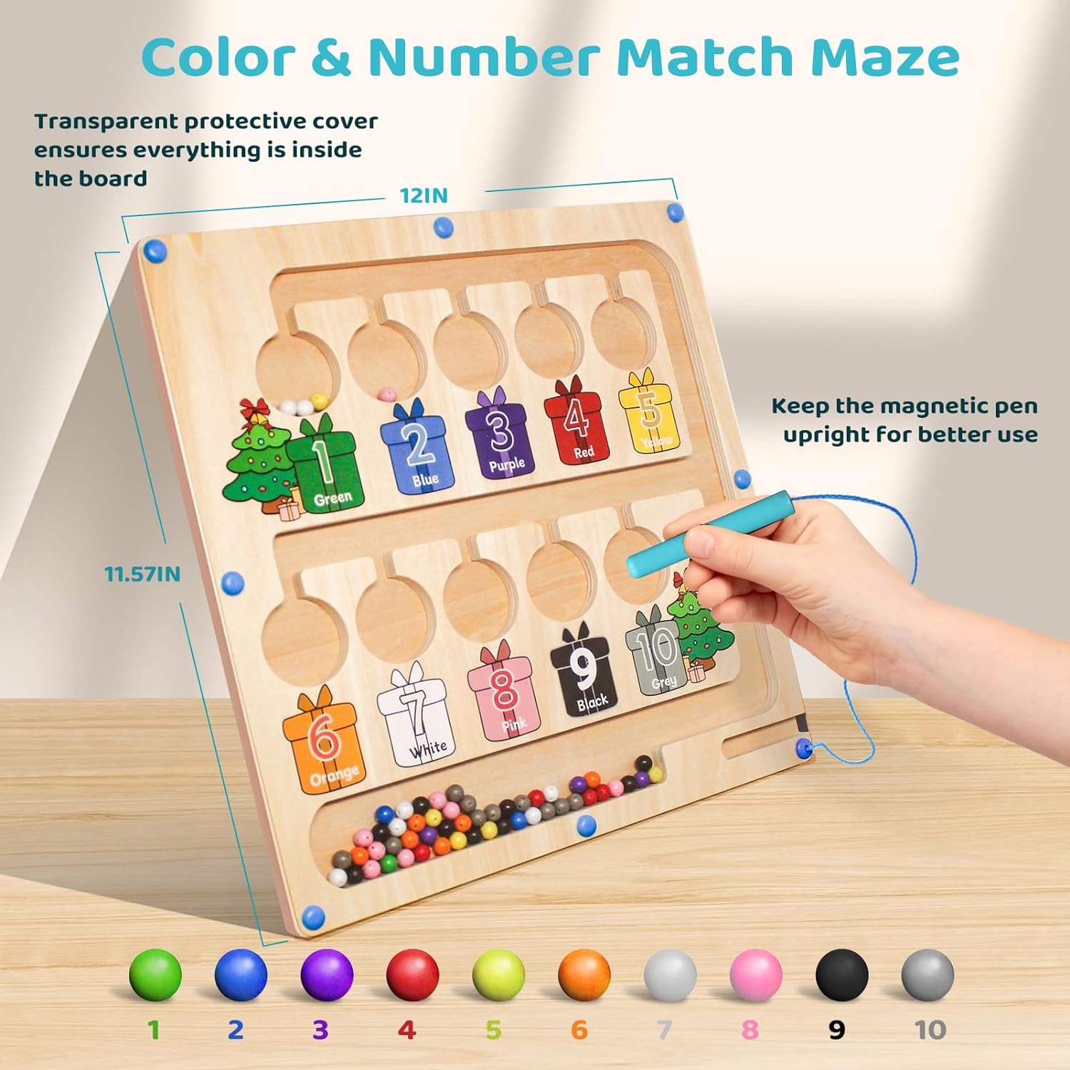 Mejore las habilidades cognitivas con la clasificación de colores y números: libere el potencial de la mente de su hijo con nuestro Laberinto magnético de colores y números. Este recurso de aprendizaje interactivo es imprescindible para las aulas de preescolar y las actividades inspiradas en Montessori. Fomenta el reconocimiento de colores y números al tiempo que promueve habilidades de pensamiento crítico a través del juego práctico.