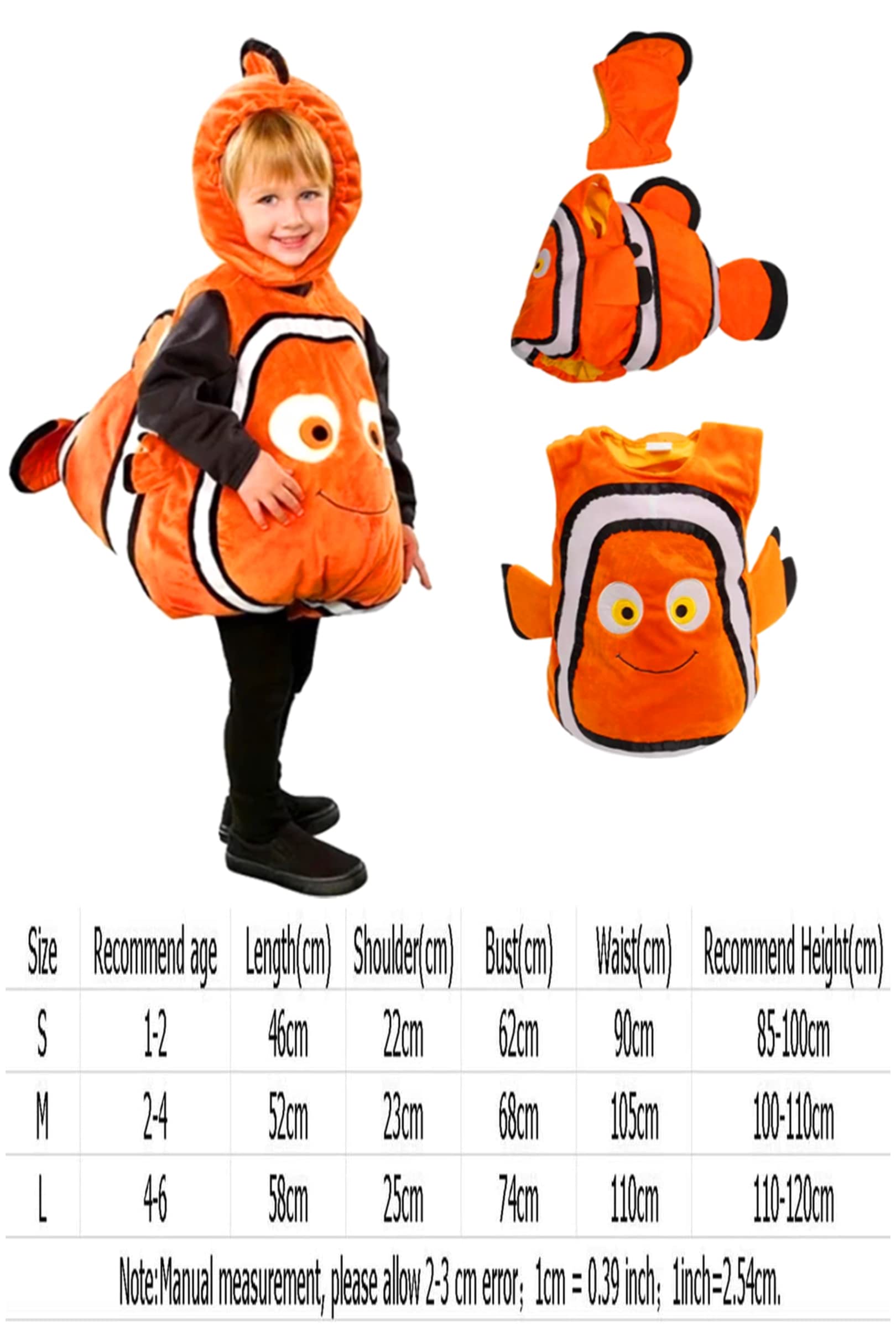 ALUIKENMR Disfraz Infantil de pez Payaso Nemo Disfraz de Halloween, 2-4 años