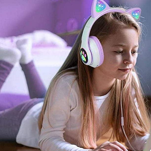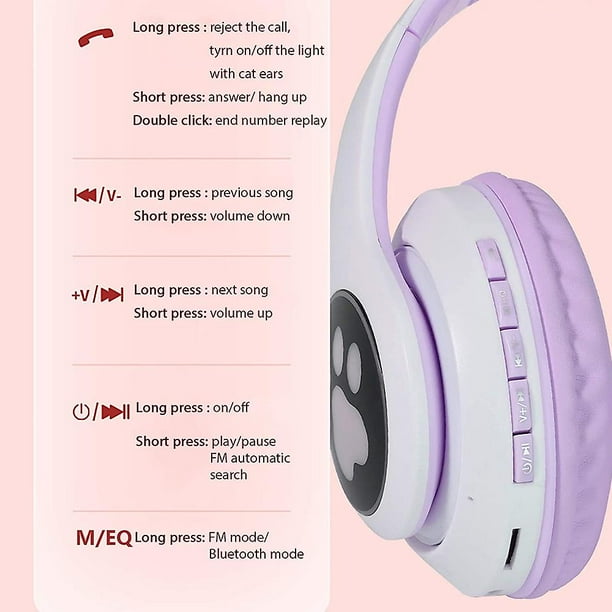 Auriculares inalámbricos JAMW Cat Ear Bluetooth con Luz LED azul