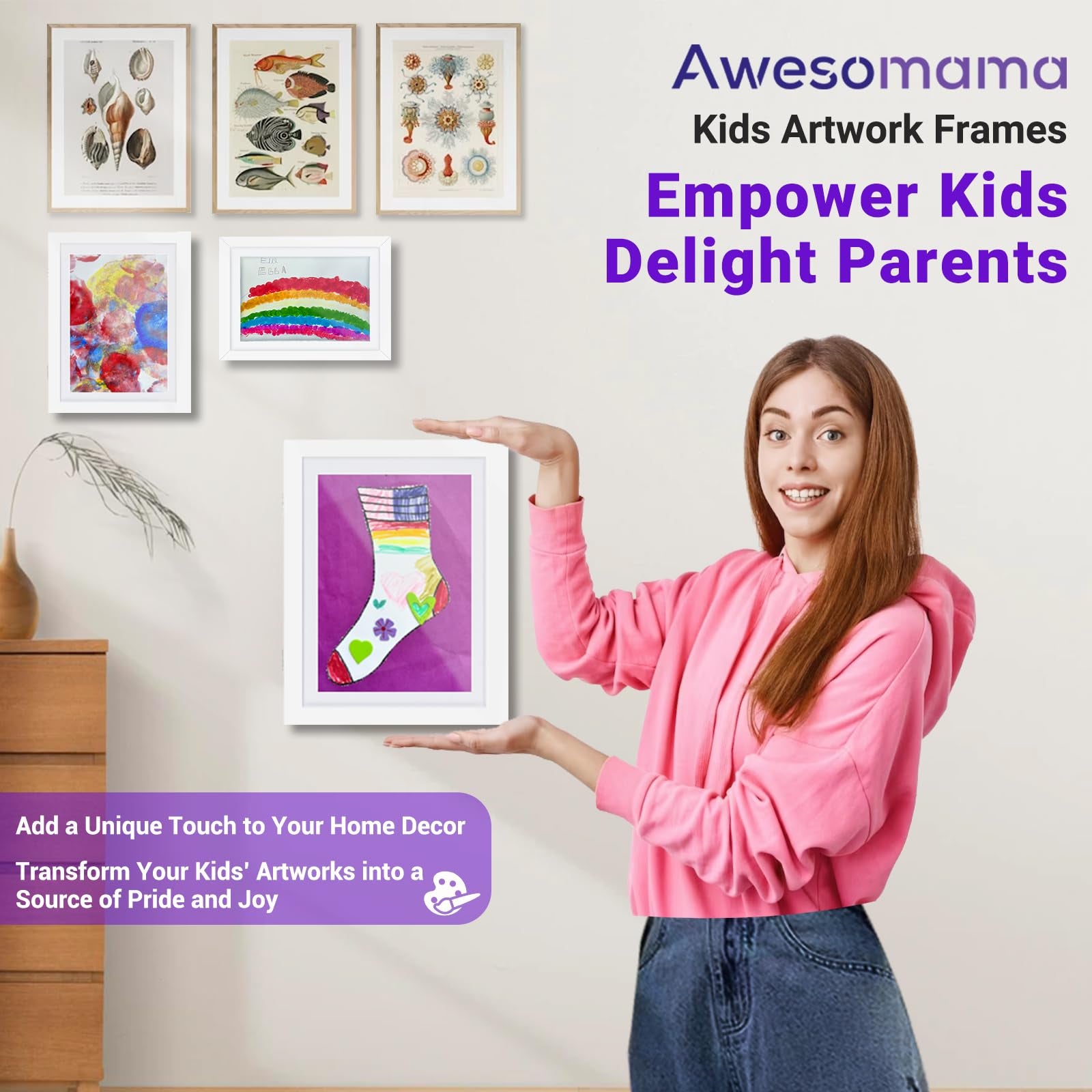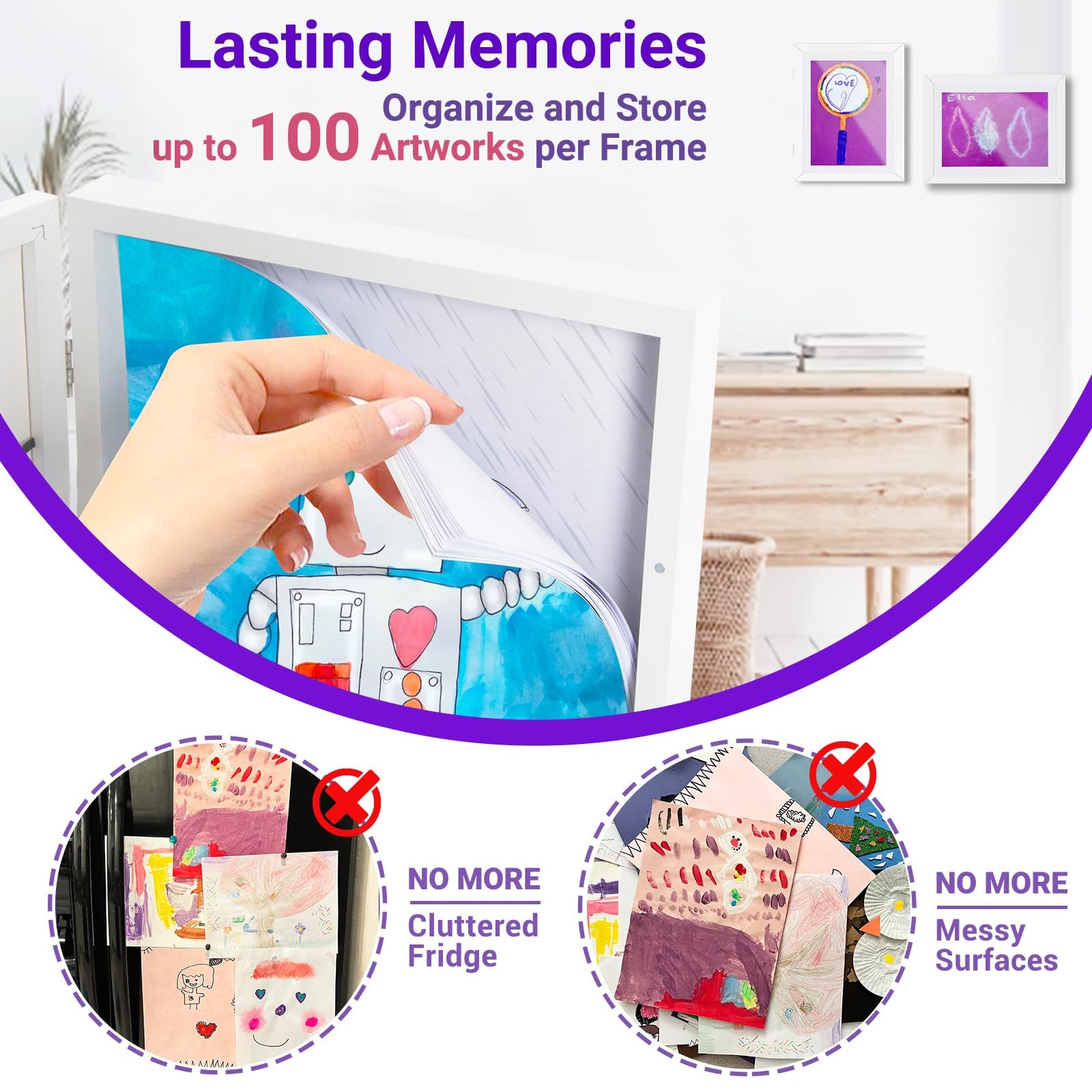 Awesomama paquete de 2 marcos de obras de arte para niños intercambiables