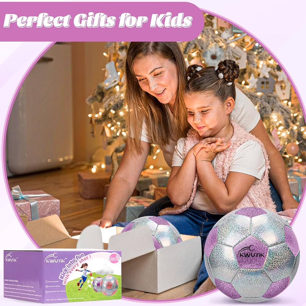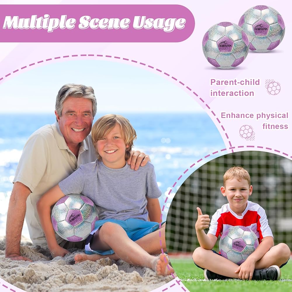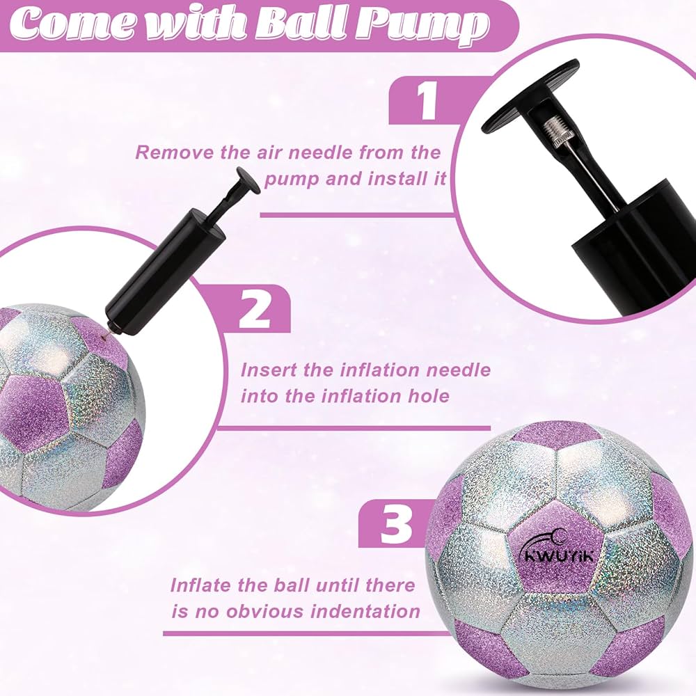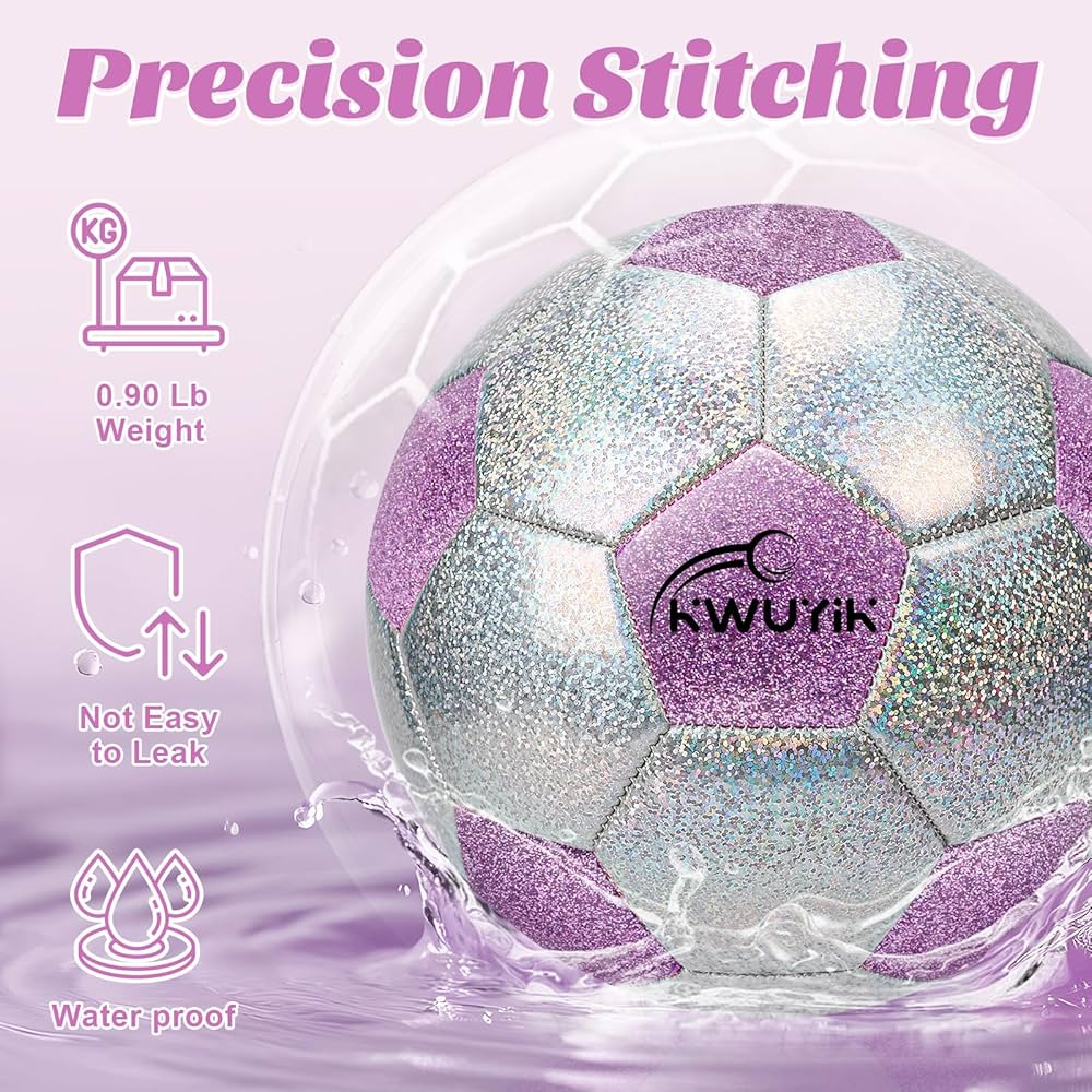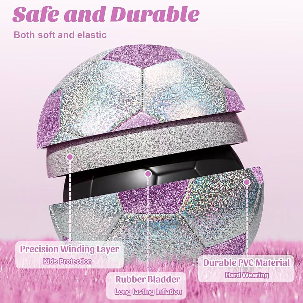 Balón de fútbol con purpurina, rosa, morado y plateado