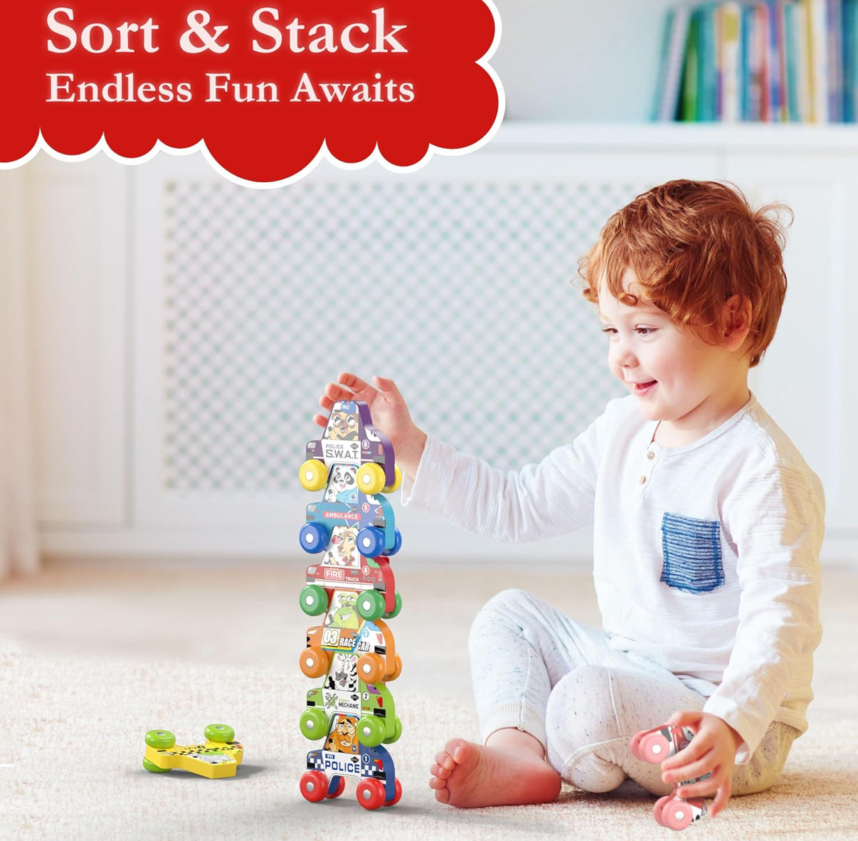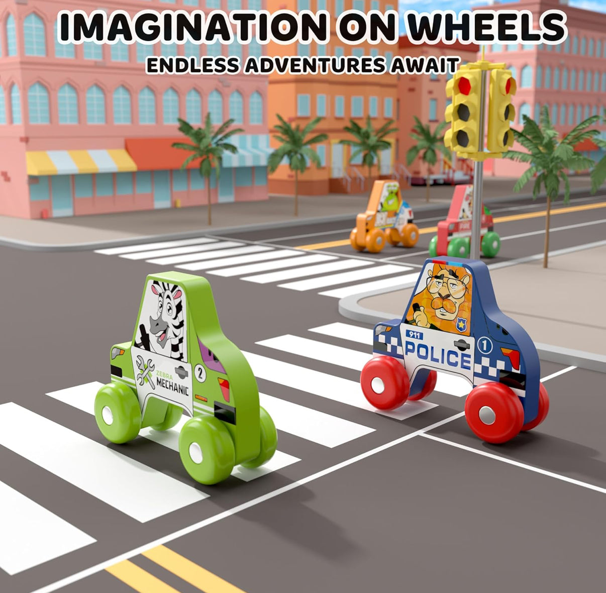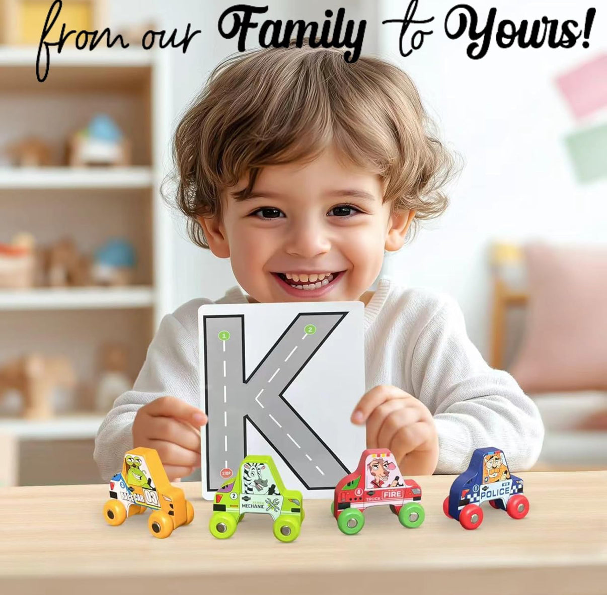 BEKILOLE 4 autos de carreras de madera, juguetes de aprendizaje Montessori