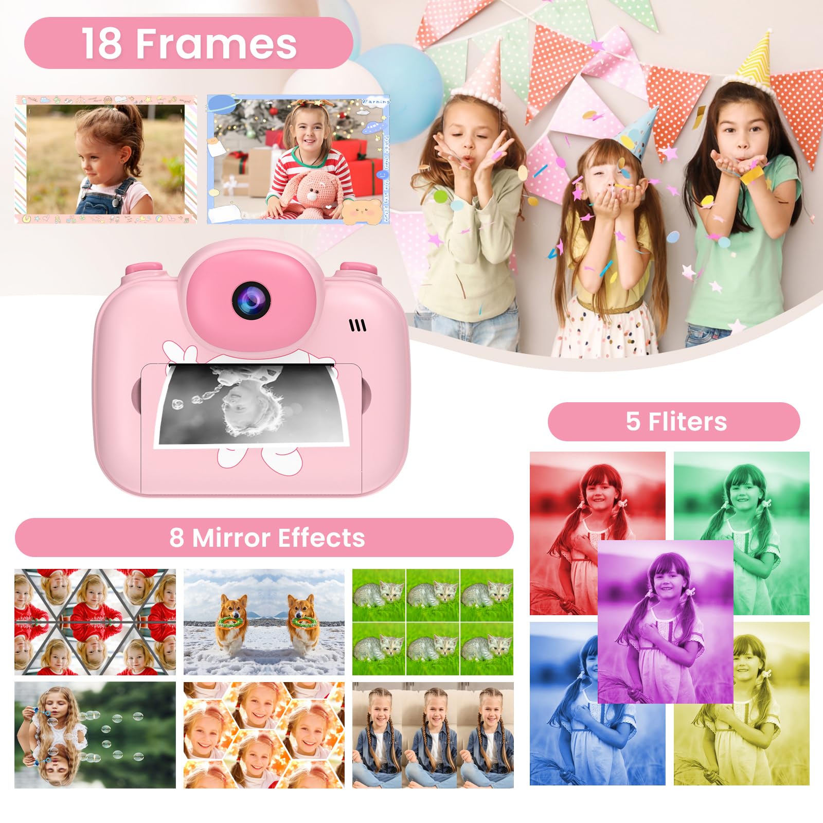 - Papel de impresión asequible: la cámara de impresión instantánea adopta tecnología de impresión térmica, elimina la necesidad de tinta o tóner, por lo que es seguro para que los niños lo usen. La impresión instantánea de cámara para niños viene con 3 rollos de papel de impresión y el papel de impresión no es caro. Los padres no tienen que preocuparse por cuántas fotos toma su hijo