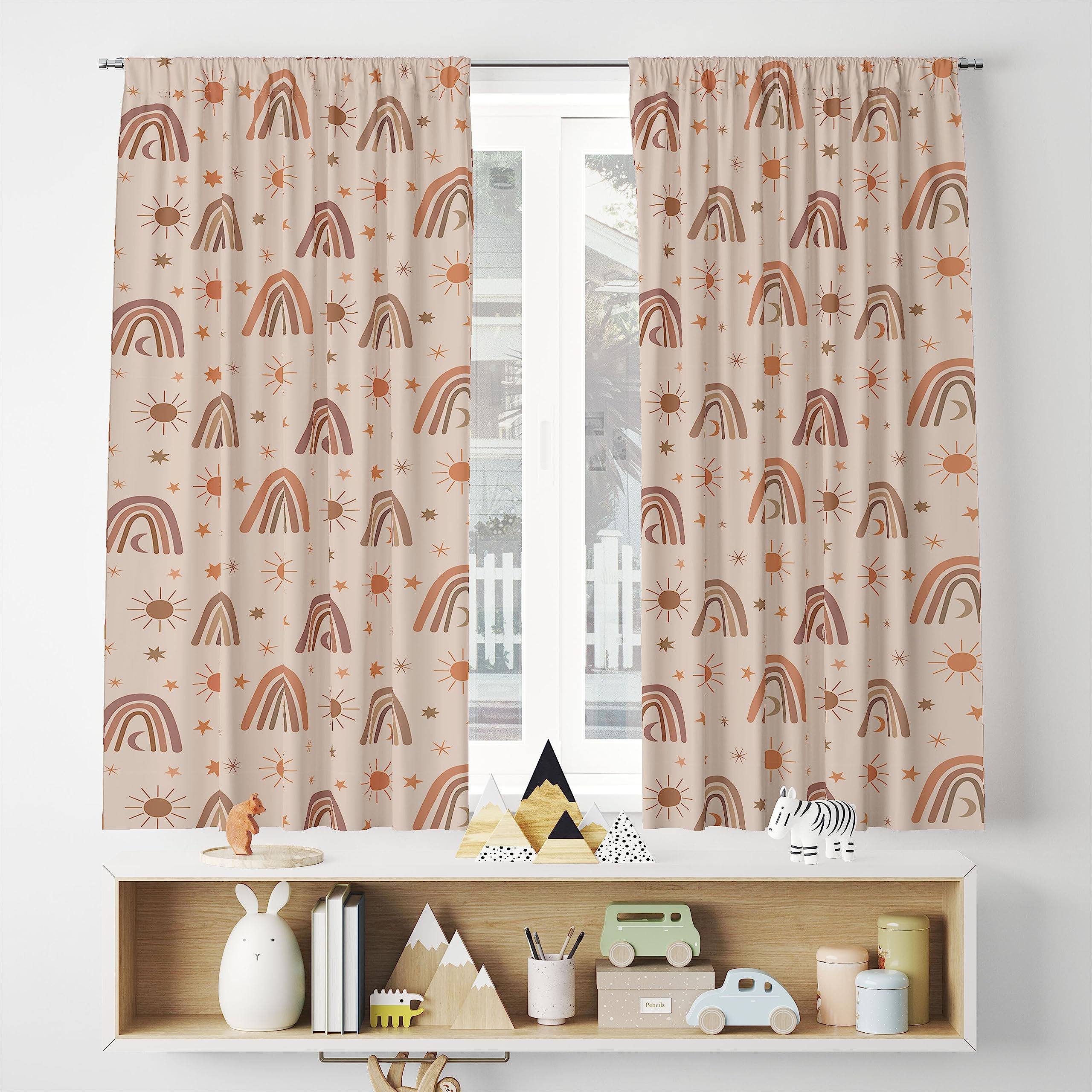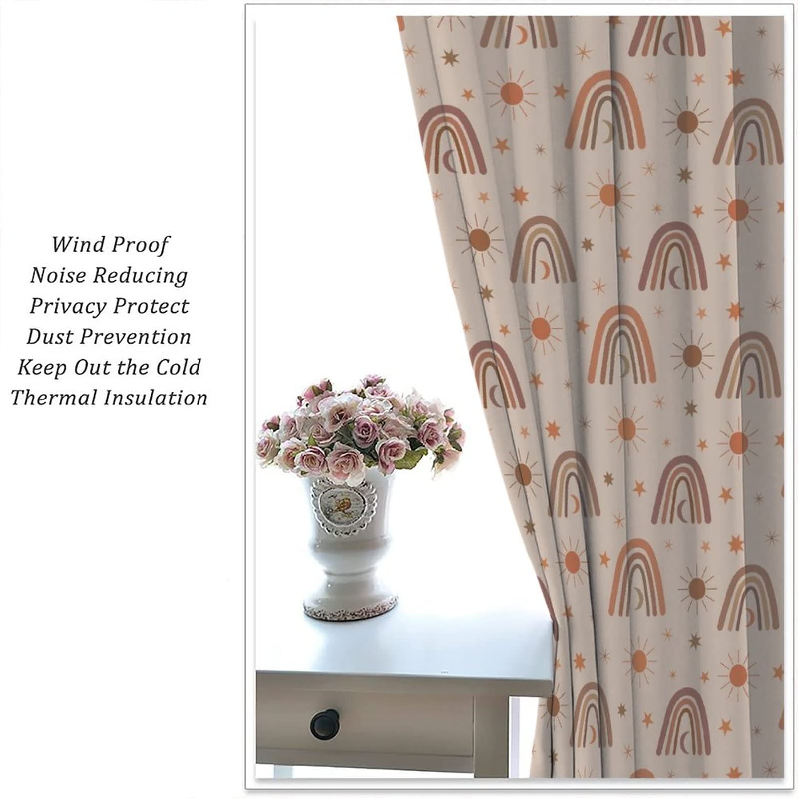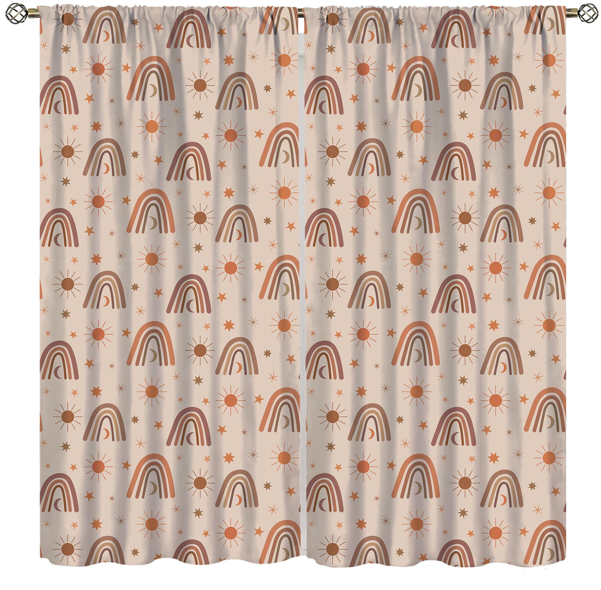 Cortinas opacas bohemias con diseño de arco iris para habitación