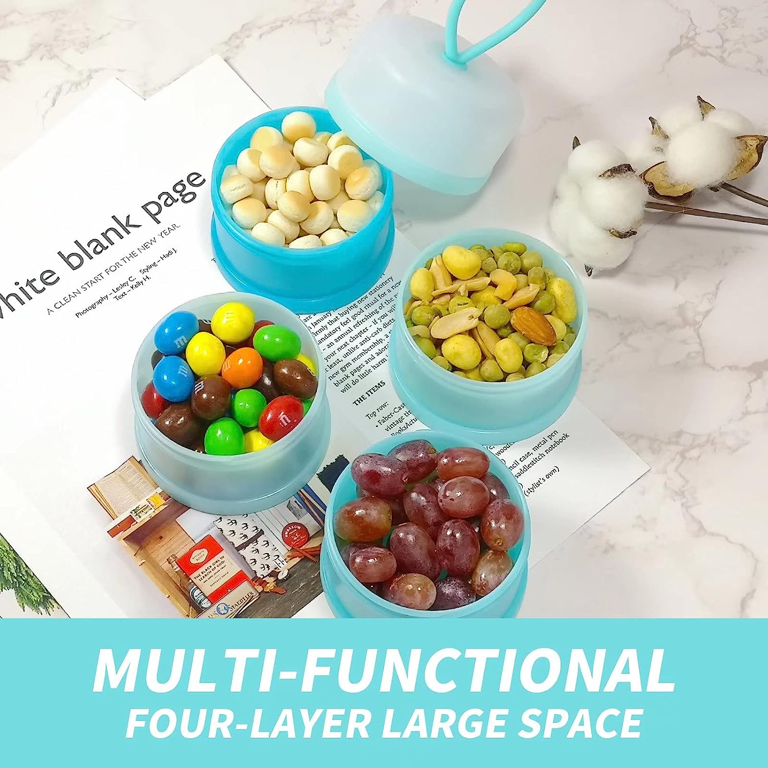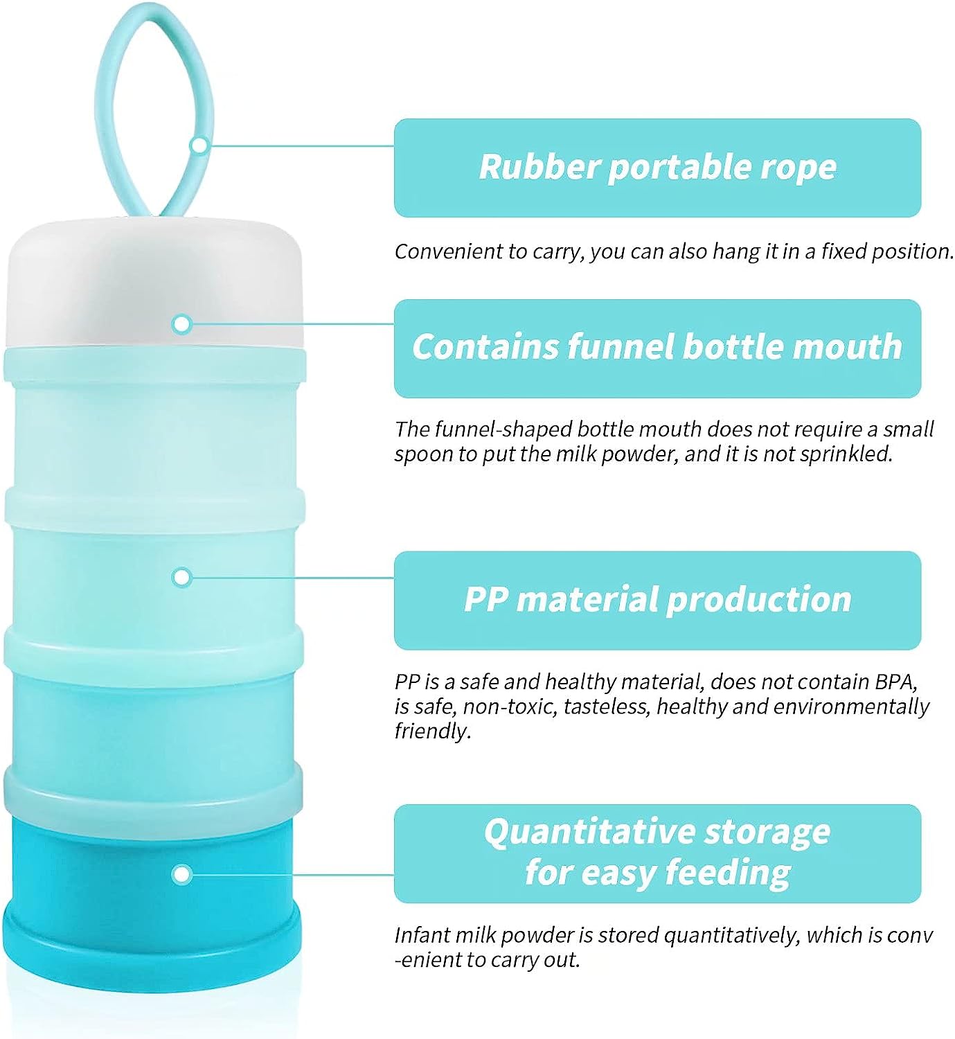 Gran espacio multifuncional de cuatro capas: no hay necesidad de medir temporalmente la espuma de la leche en el exterior, y los productos físicos se almacenan en capas sin olor. Cada capa puede contener aproximadamente 50 g de leche en polvo, así como frutas, alimentos complementarios, bocadillos. (Nota: no se permite el agua).