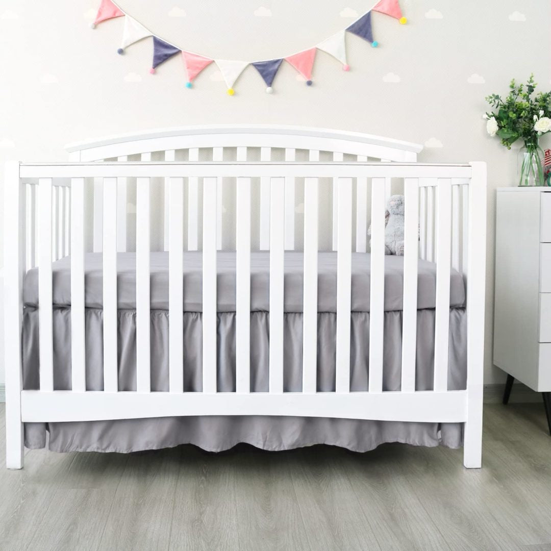 Falda de cama para cuna Biloban color gris, plisada de 4 lados