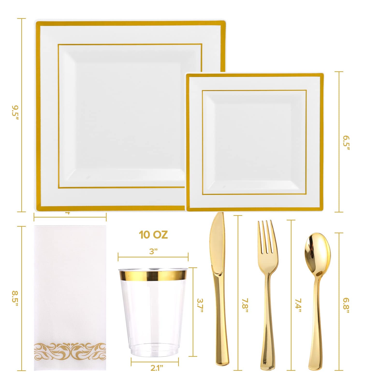 FOCUSLINE Juego de vajilla dorada de 175 unidades para 25 invitados