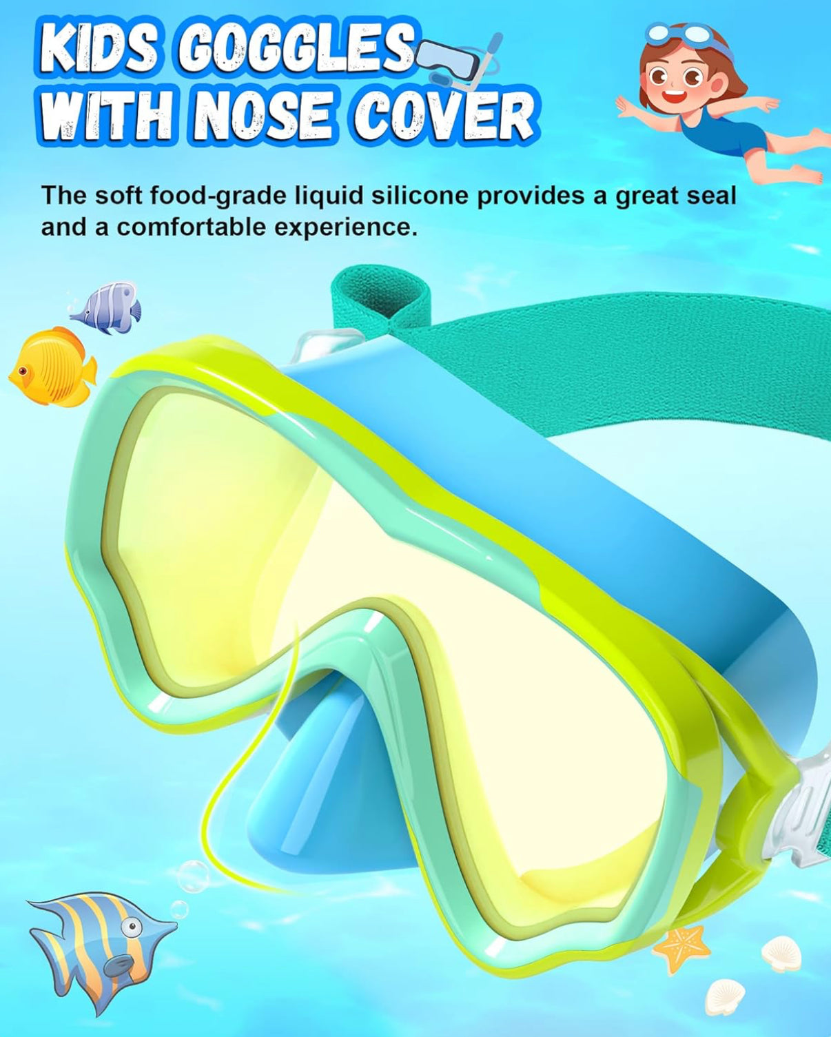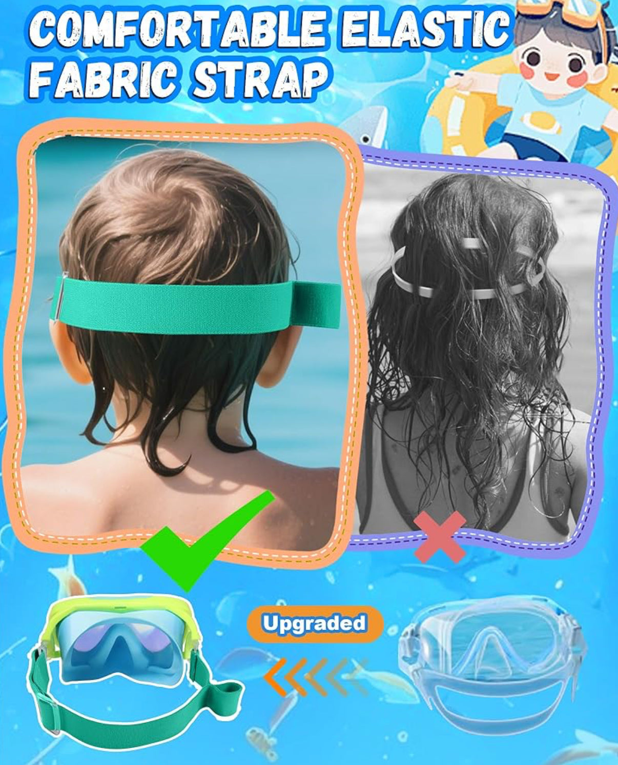 Gafas de natación para niños con correa de tela