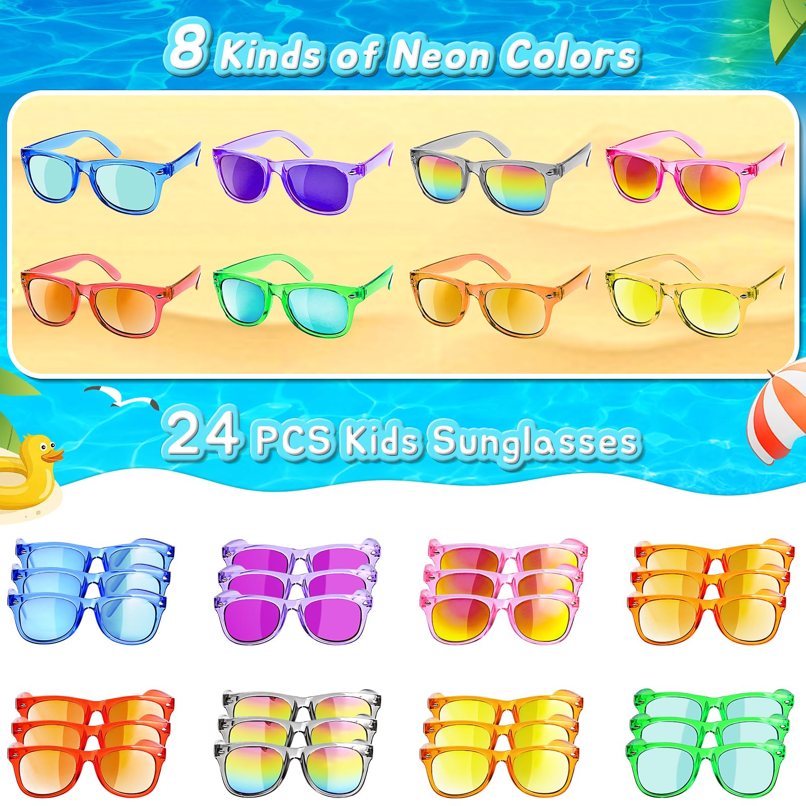 Gafas de sol de neón con protección UV 400 para niños y niñas – 24 unidades