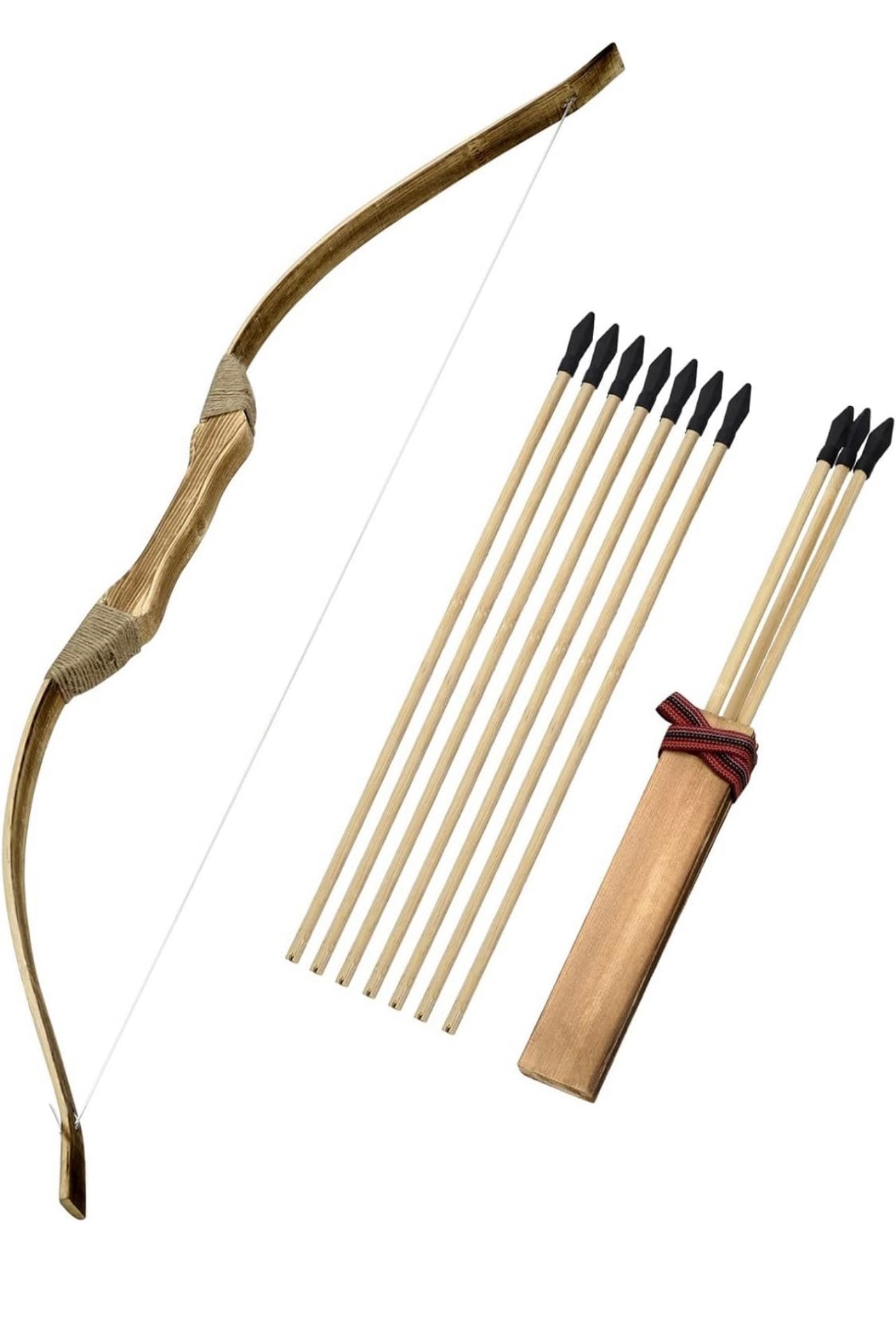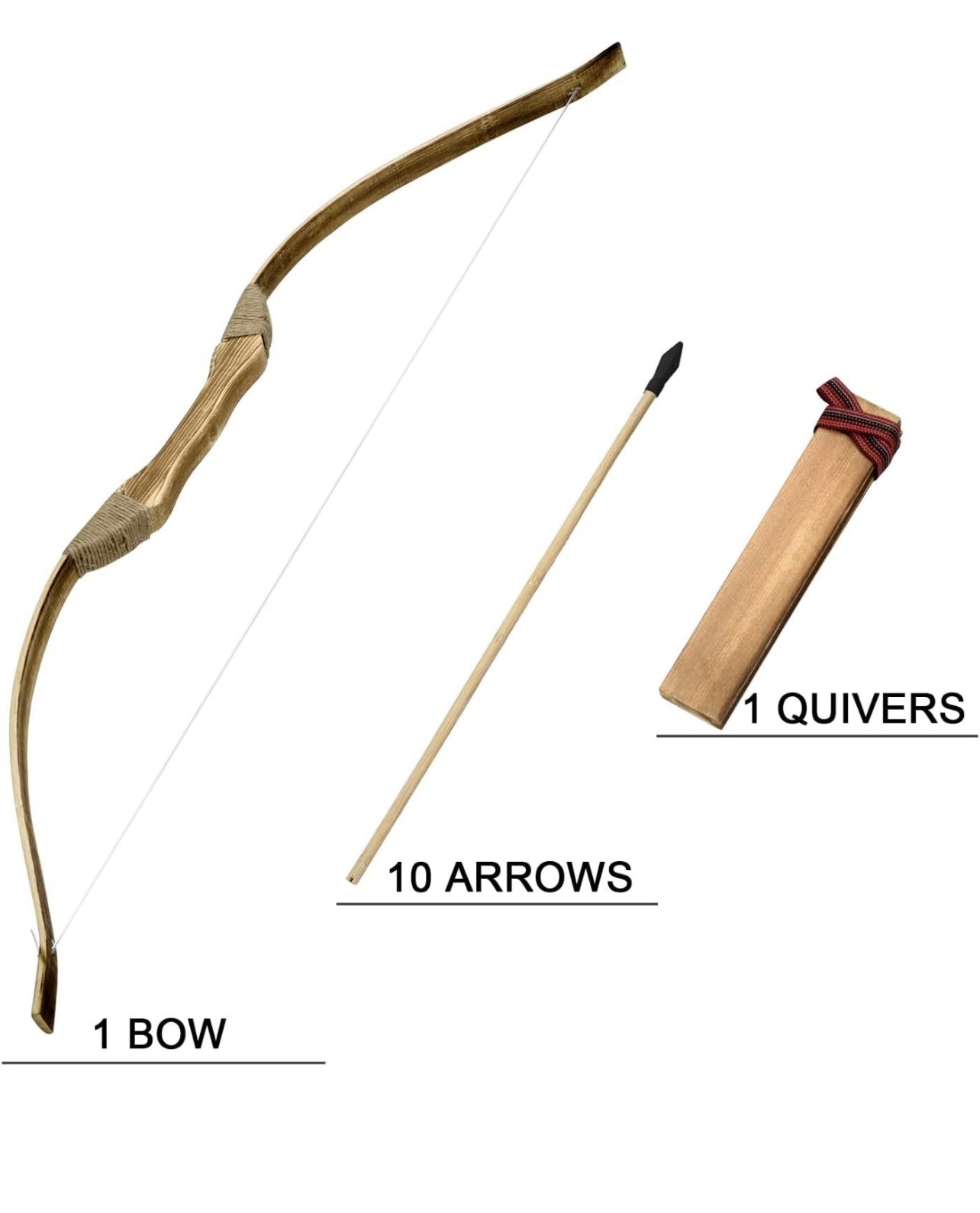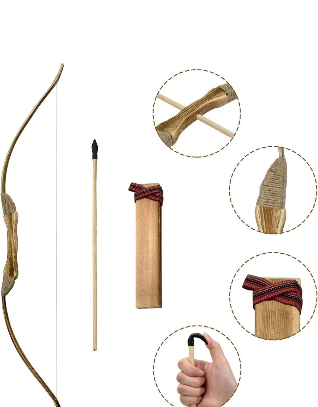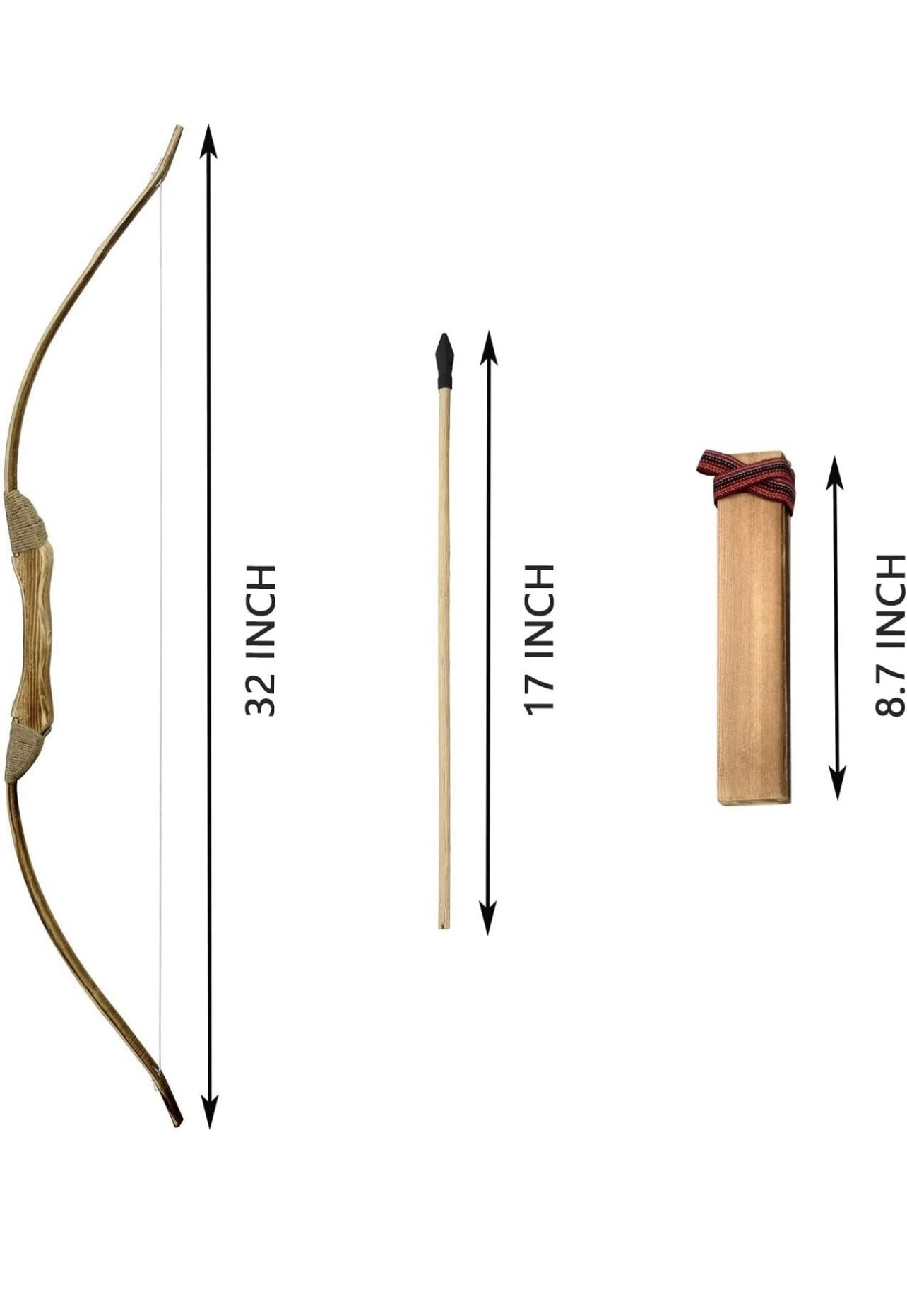 Juego de arco y flecha de madera, hecho a mano para niños de 32 pulgadas