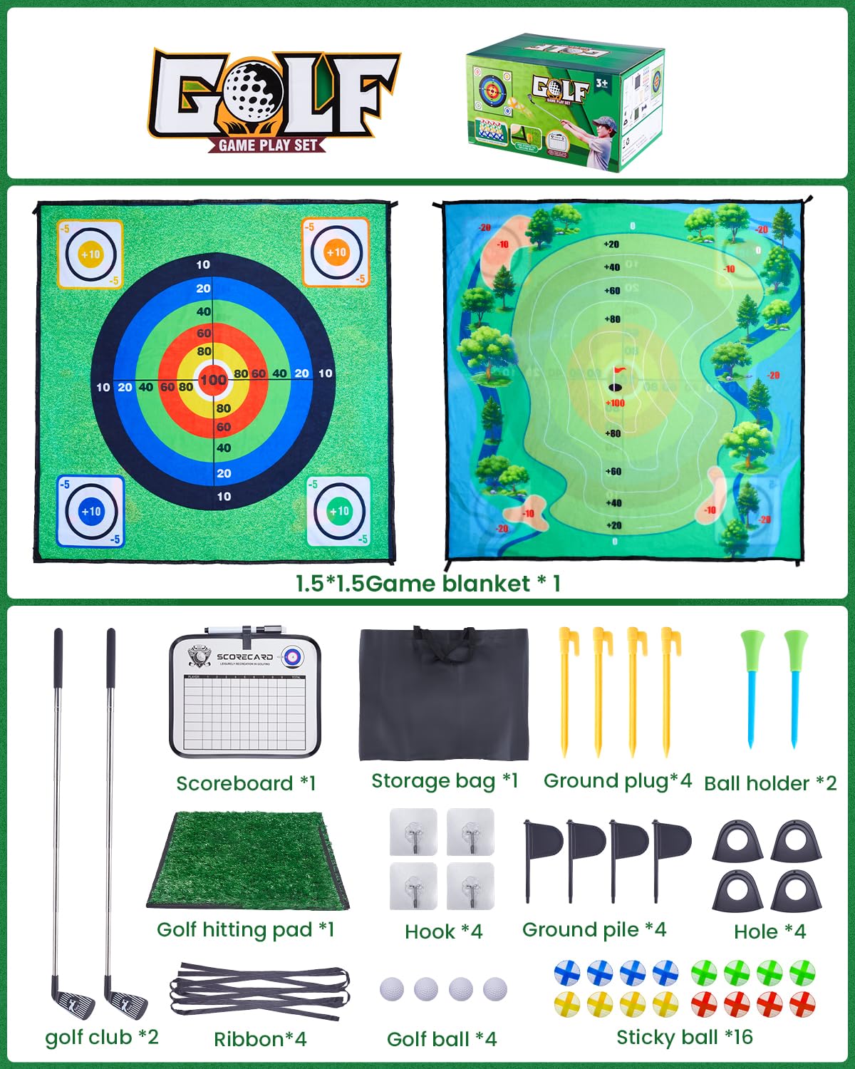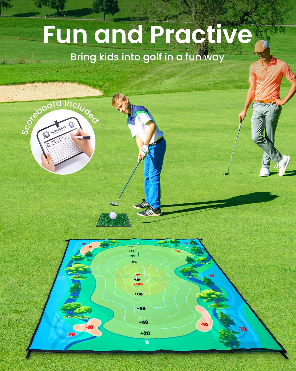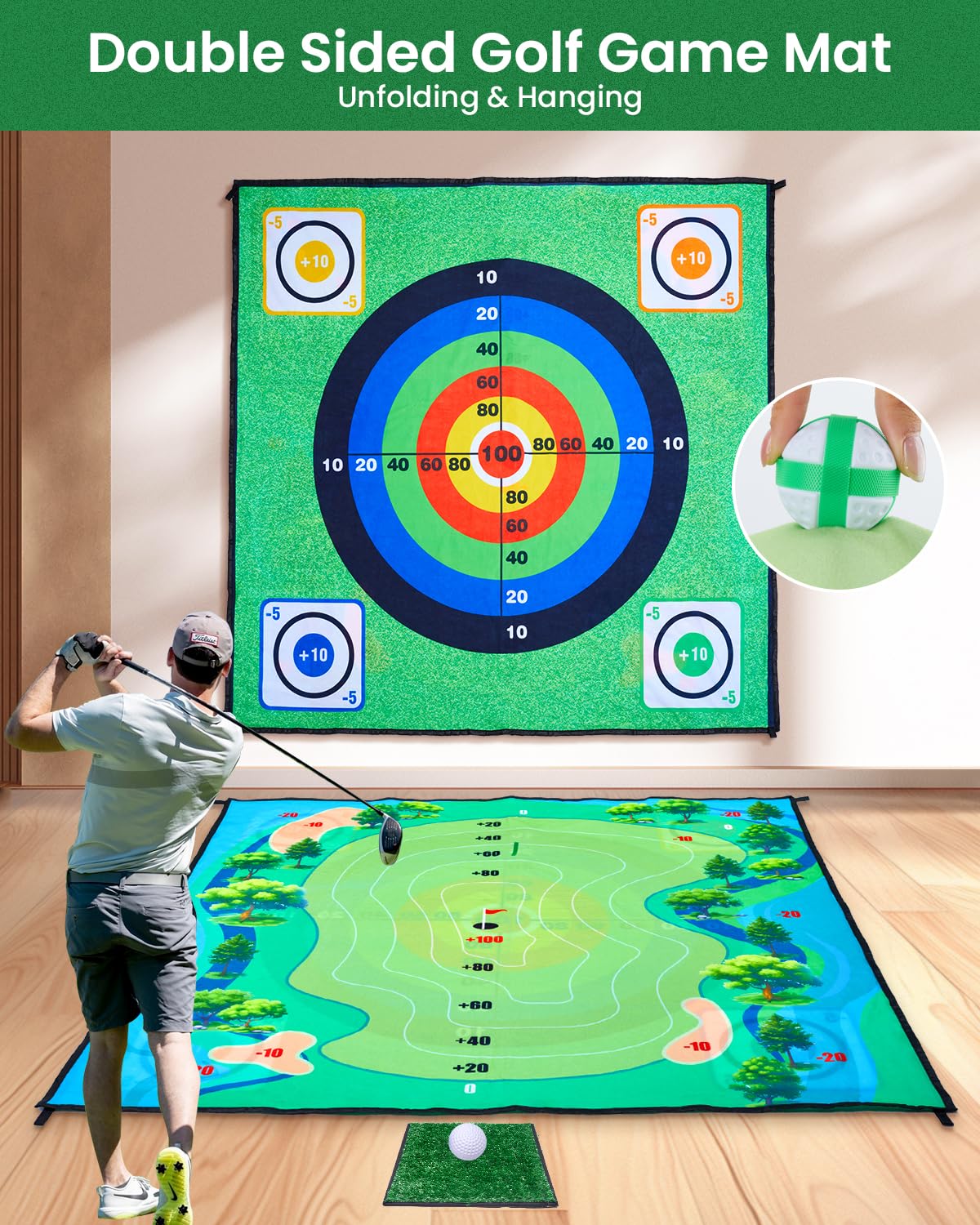 Juego de chipping de golf Minetom con tapete de golpeo, 152 x 152 cm
