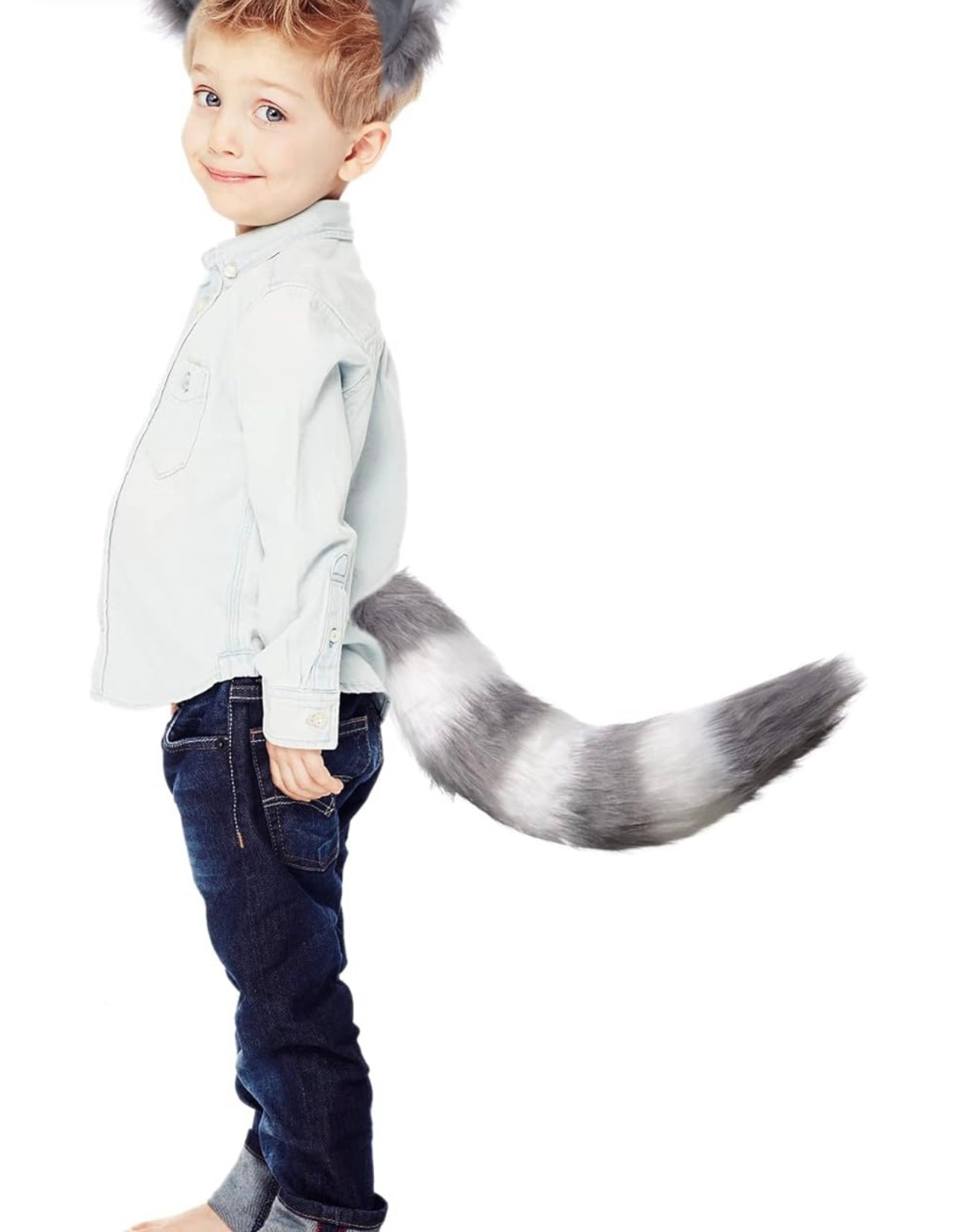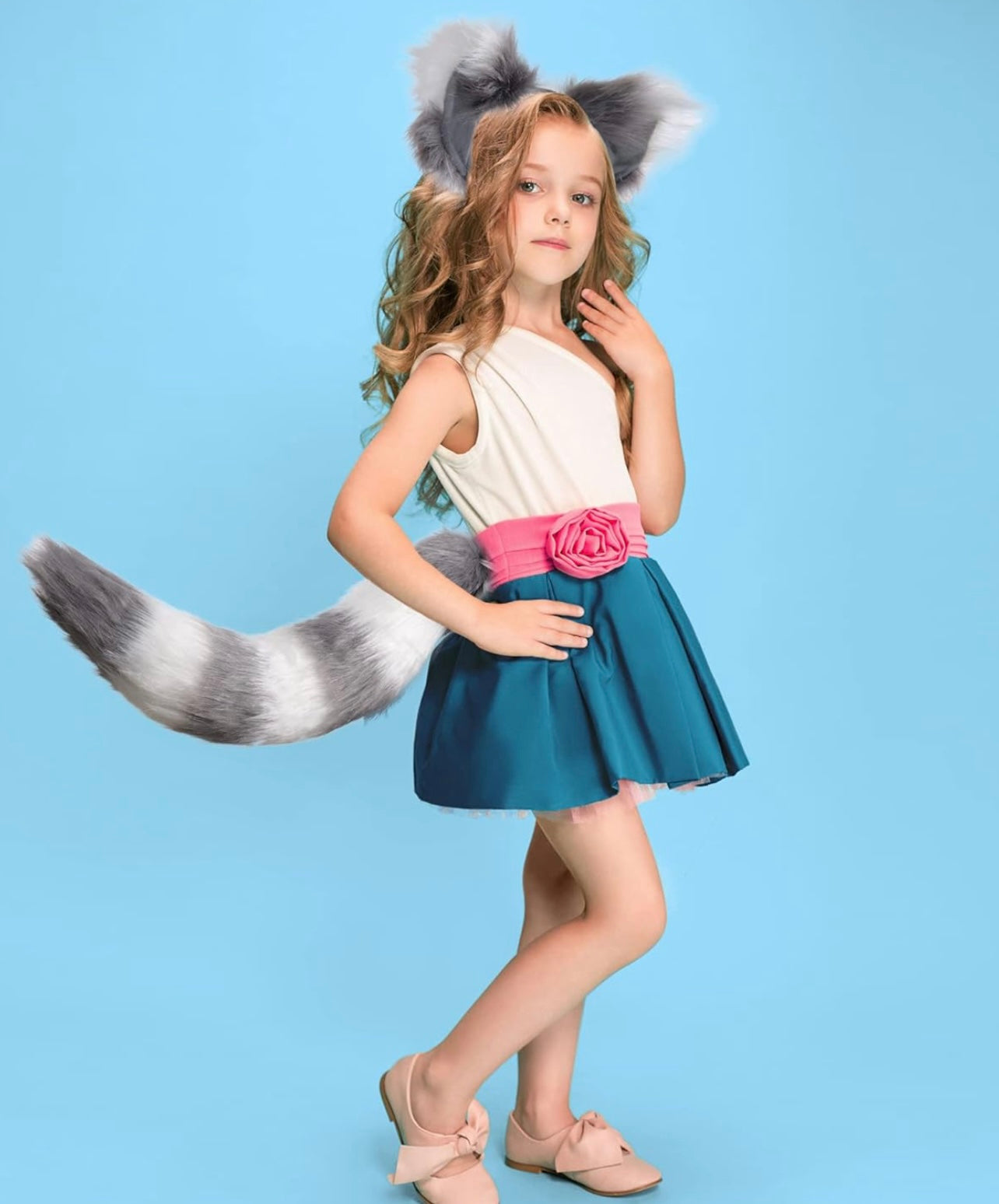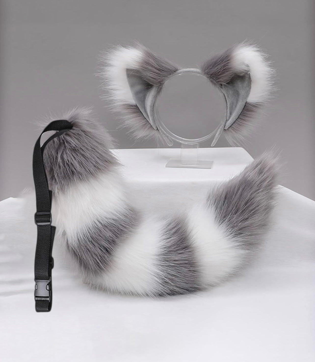 Juego de orejas de cola de piel sintética, disfraz de cola de lobo peludo