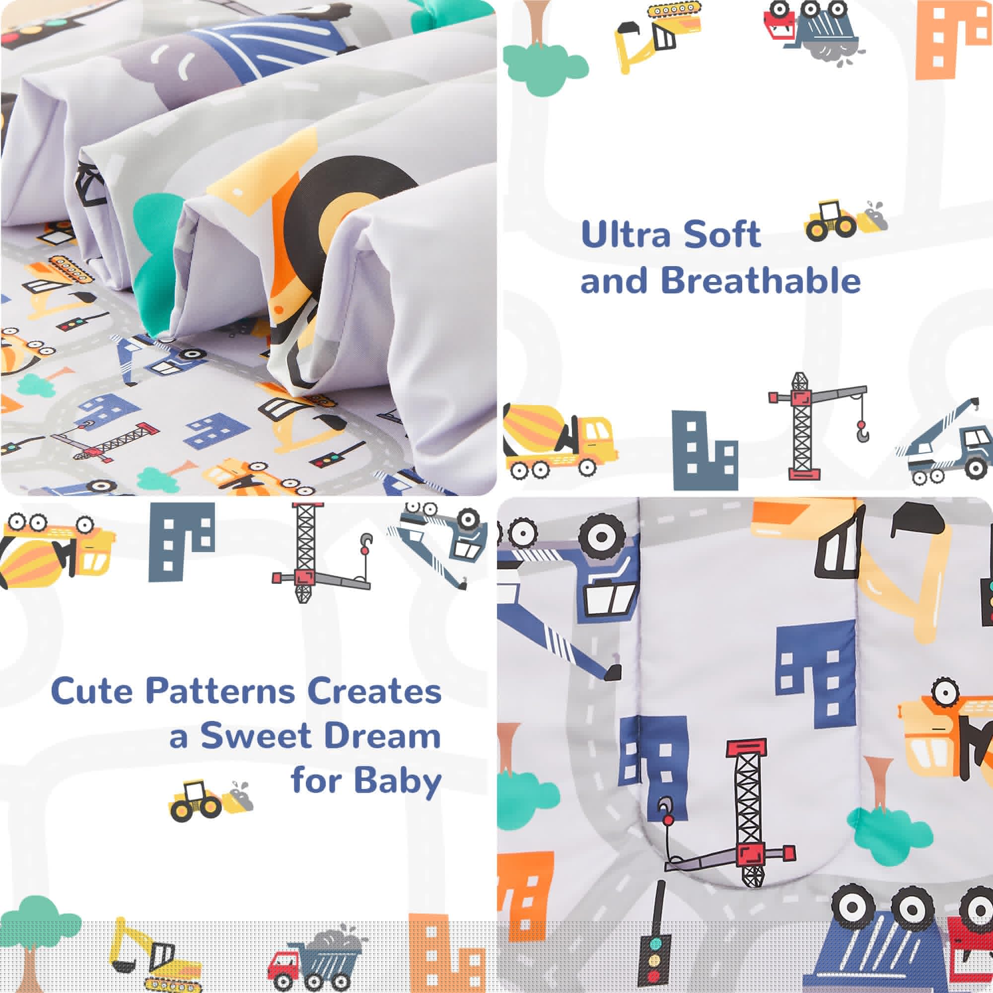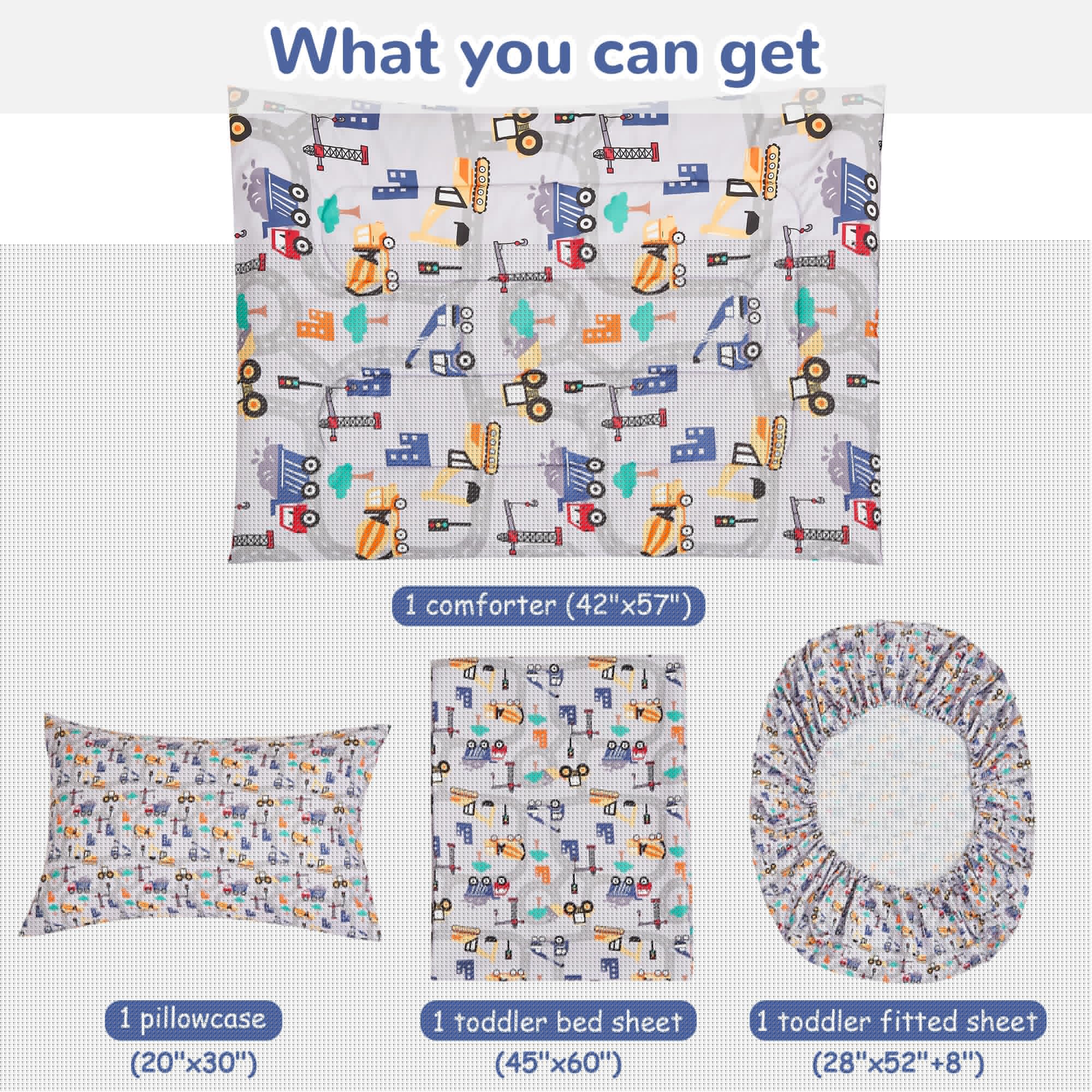 Juego de ropa de cama de construcción para niños, juego de edredón de 4 piezas