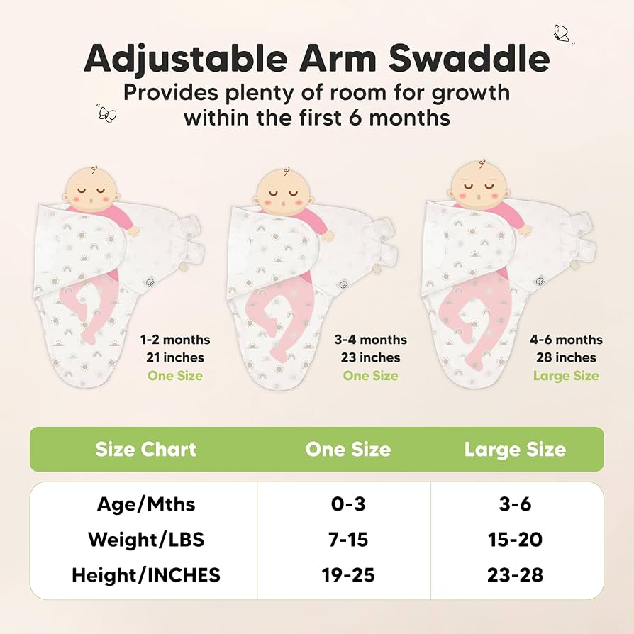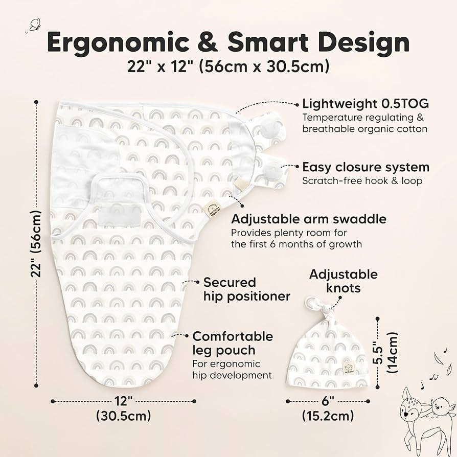 KeaBabies Paquete de 3 swaddles de 0-3 meses