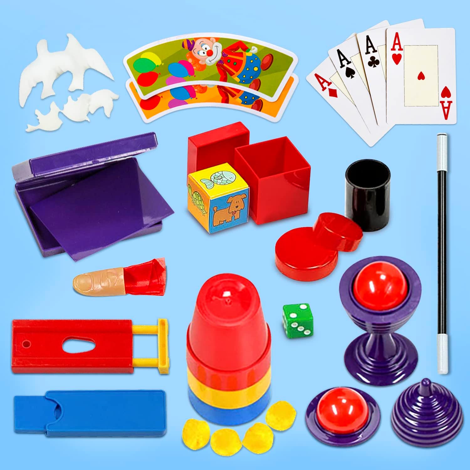 Conjunto de magia desconcertante: Atrae a tu pequeño mago favorito con 12 divertidos y coloridos accesorios para realizar más de 22 trucos de magia cautivadores y místicos, como tazas y bolas, cartas en crecimiento y mucho más.