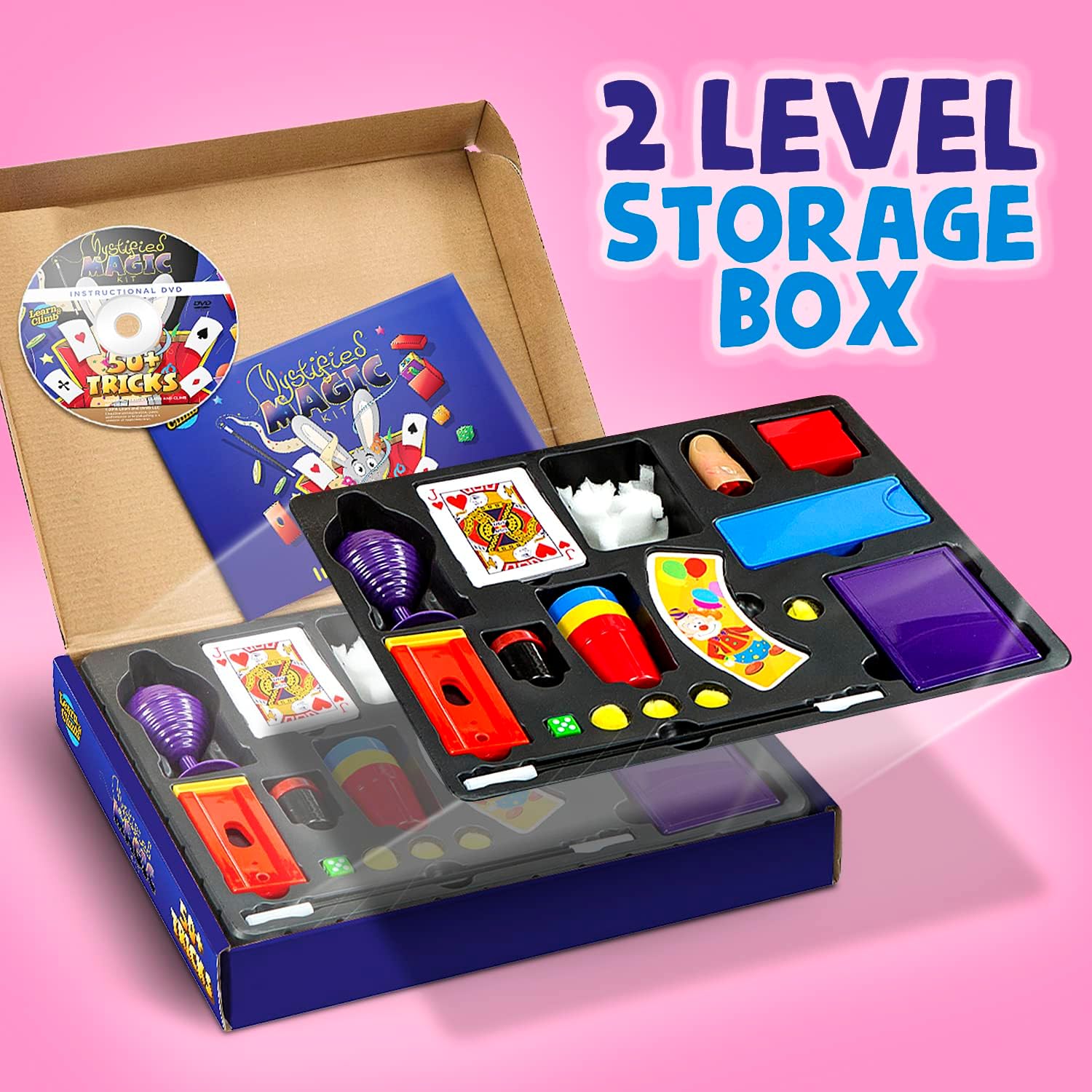 Diseñado para niños de 6 años en adelante, este kit mágico proporciona trucos que los niños pueden realizar desde el primer momento y otros que dominarán con la práctica, ¡todo mientras promueve el desarrollo de habilidades motoras finas y una alta autoestima!