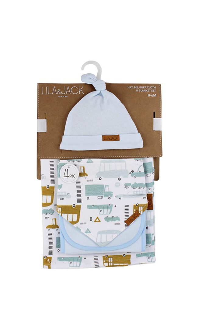 Lila and Jack- gorro, trapo de eructo, Babero y franela- Set 0-6 meses